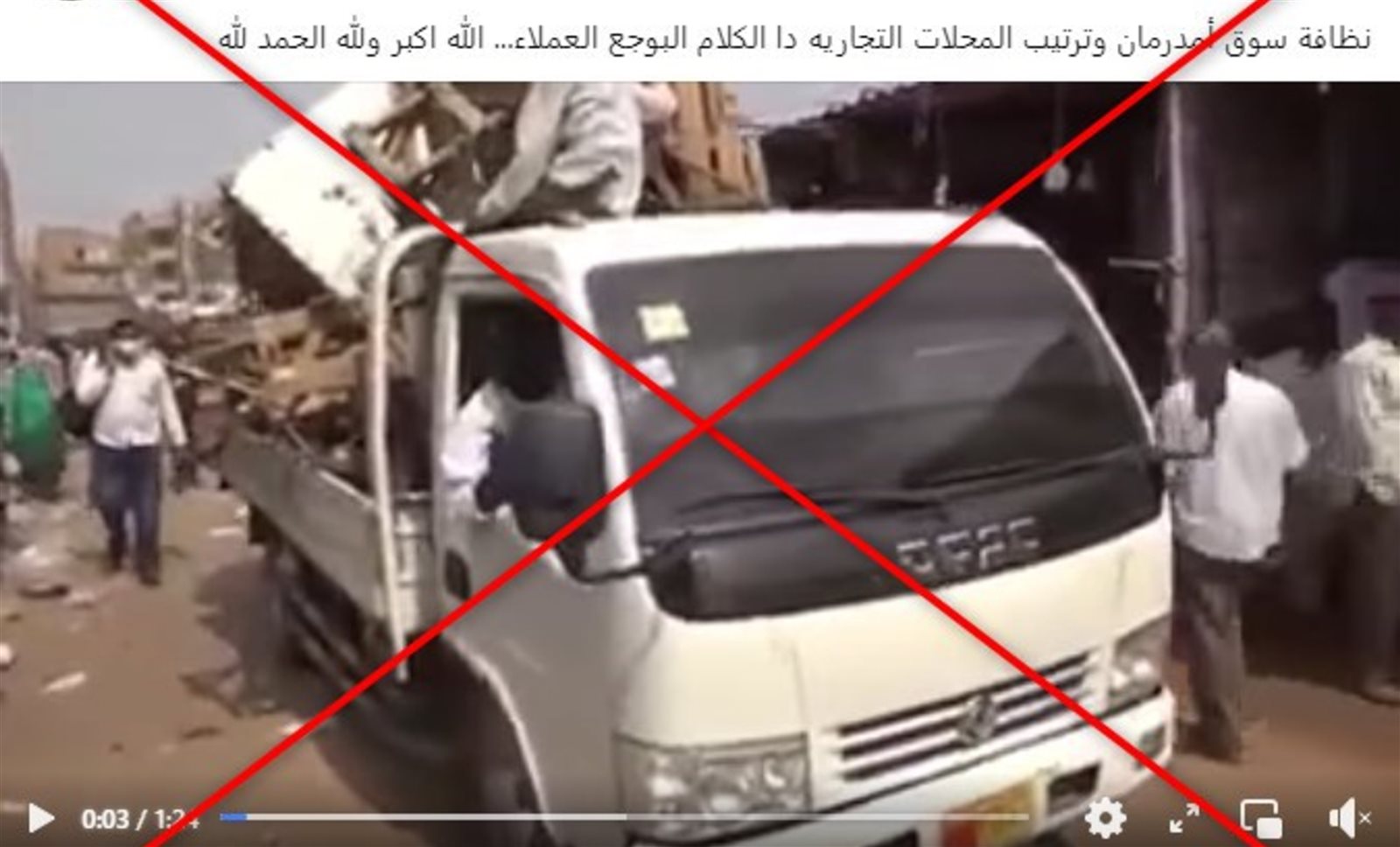 لكن الفيديو المتداول قديم، وأظهر البحث عنه بعد تقطيعه إلى مشاهد ثابتة أنه منشور على وسائل إعلام محلية سنة 2021، ويظهر تنظيف سوق أم درمان في السودان.
