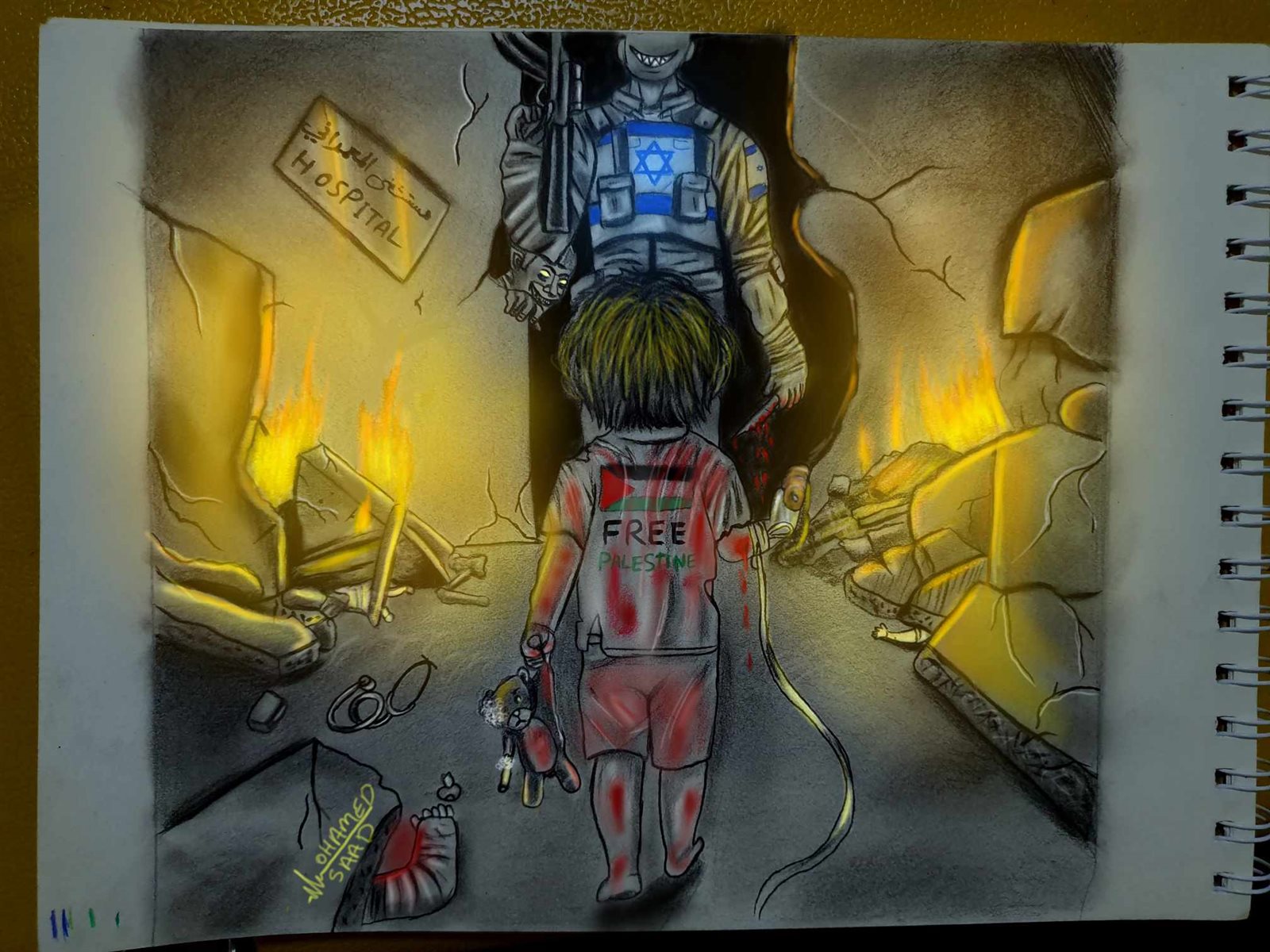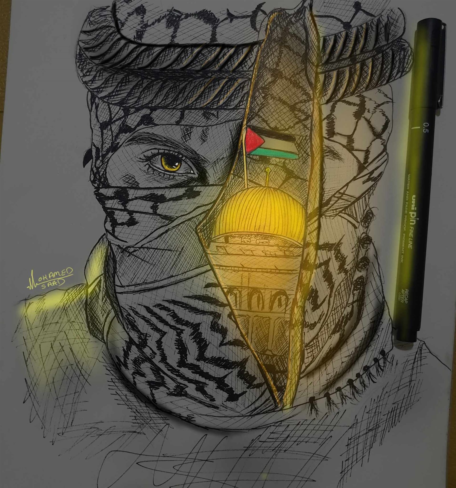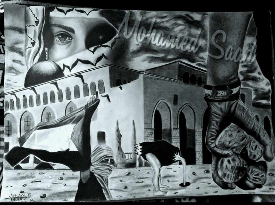 "ومن ضمن رسوماتي رسمتين لدعم إخواتنا في غزة؛ تضامنا معهم وهما من ضمن اللوحات.. كان دايما الرسم هو صديقي الوحيد اللي بالجأ له، سواء في أوقات الفرح أو الحزن.. كل لوحاتي دايما بتعبر عن شيء.. باحب أحكي في رسوماتي، وبسيب الجمهور هو اللي يشوف كل لوحة من وجهة نظره.. وطبعا بافرح جدا لما بانزِّل رسوماتي والجمهور يعرفها بدون توقيع.. وده بسبب أسلوبي المميز اللي محدش بيرسم بيه".
