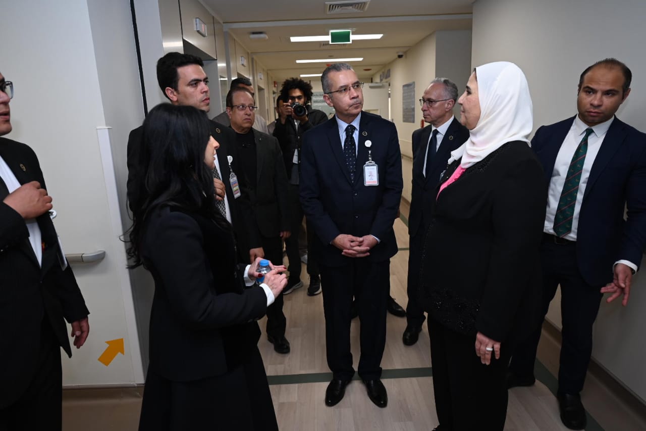 وتفقدت وزيرة التضامن الاجتماعي والحضور المستشفى المقسم إلى 6 أدوار، تشمل قسم للطوارئ مجهز لاستقبال 30 مصابًا في نفس الوقت عند حدوث كوارث كبرى، بالإضافة إلى وحدات عناية مركزة لمختلف الأعمار والتي يبلغ عددها أكثر 30 وحدة من بينهم 8 وحدات للأطفال لتصبح الأكبر من نوعها في مصر والشرق الأوسط، كما يضم المستشفى عدد من الحاضنات ومركز التأهيل البدني، وقسم للبحث العلمي والبحوث الاجتماعية، وقسم مكافحة العدوى، وقسم التغذية، وقسم إدارة الألم وتخفيفه.
