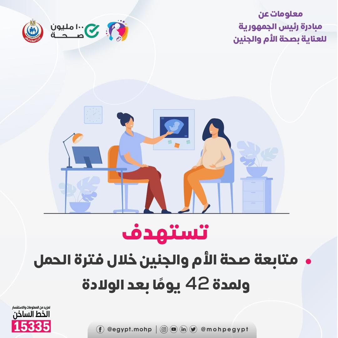 وأكدت وزارة الصحة أن المبادرة تشمل إجراء تحليل زلال البول وأمراض الجهاز البولي، فضلا عن قياس الطول والوزن وضغط الدم، كما تهدف متابعة صحة الأم والجنين طوال فترة الحمل وبعد 42 يوما بعد الولادة.