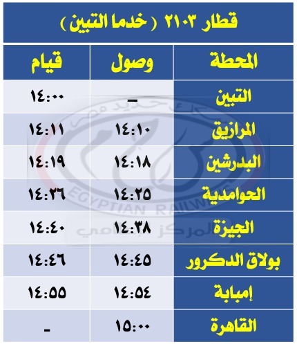 - تعديل ميعاد قطار 2103 ( خدما التبين ) كالجدول المرفق.