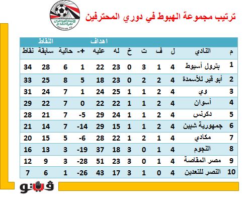 جدول ترتيب دوري المحترفين مجموعة الهبوط