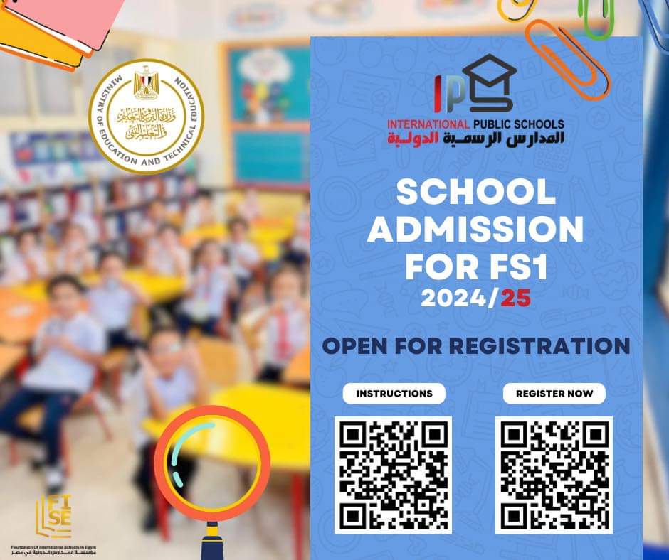 أعلنت وزارة التربية والتعليم والتعليم الفني فتح باب التقدم للمستوى الأول (FS1) بمرحلة رياض الأطفال بكافة فروع المدارس الرسمية الدولية (IPS) للعام الدراسي 2024 / 2025، وذلك اعتبارا من اليوم الأحد الموافق 10 مارس 2024 وحتى يوم الأحد الموافق 31 مارس 2024.