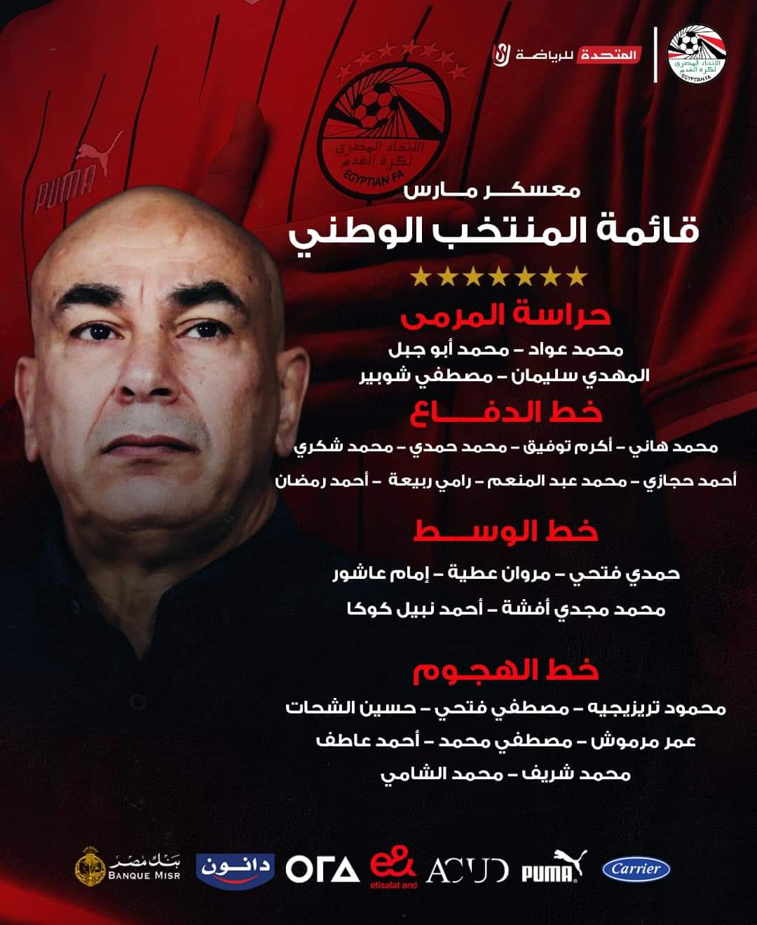 وضمت قائمة منتخب مصر التي أعلنها الجهاز الفني اللاعبين الأتي أسمائهم: