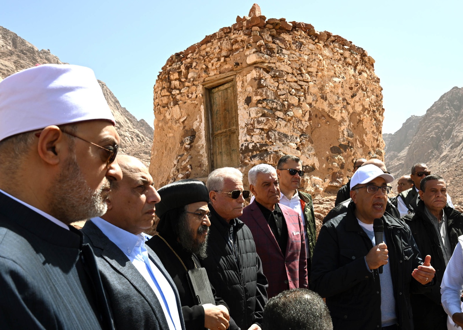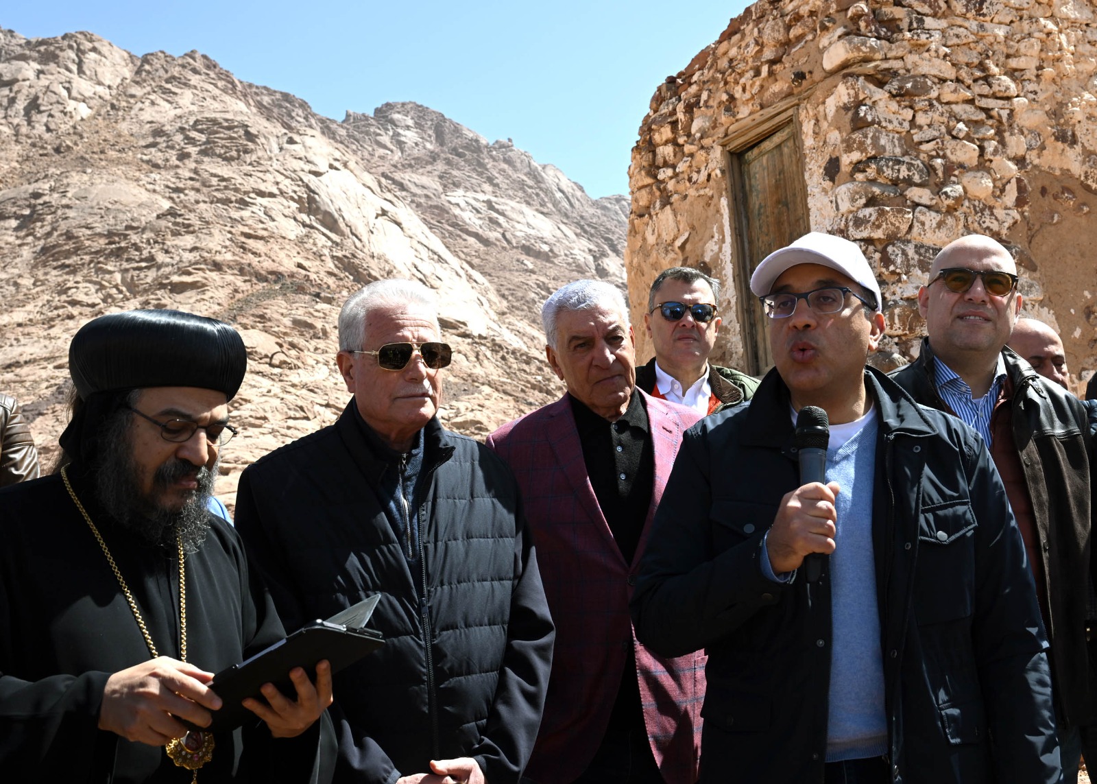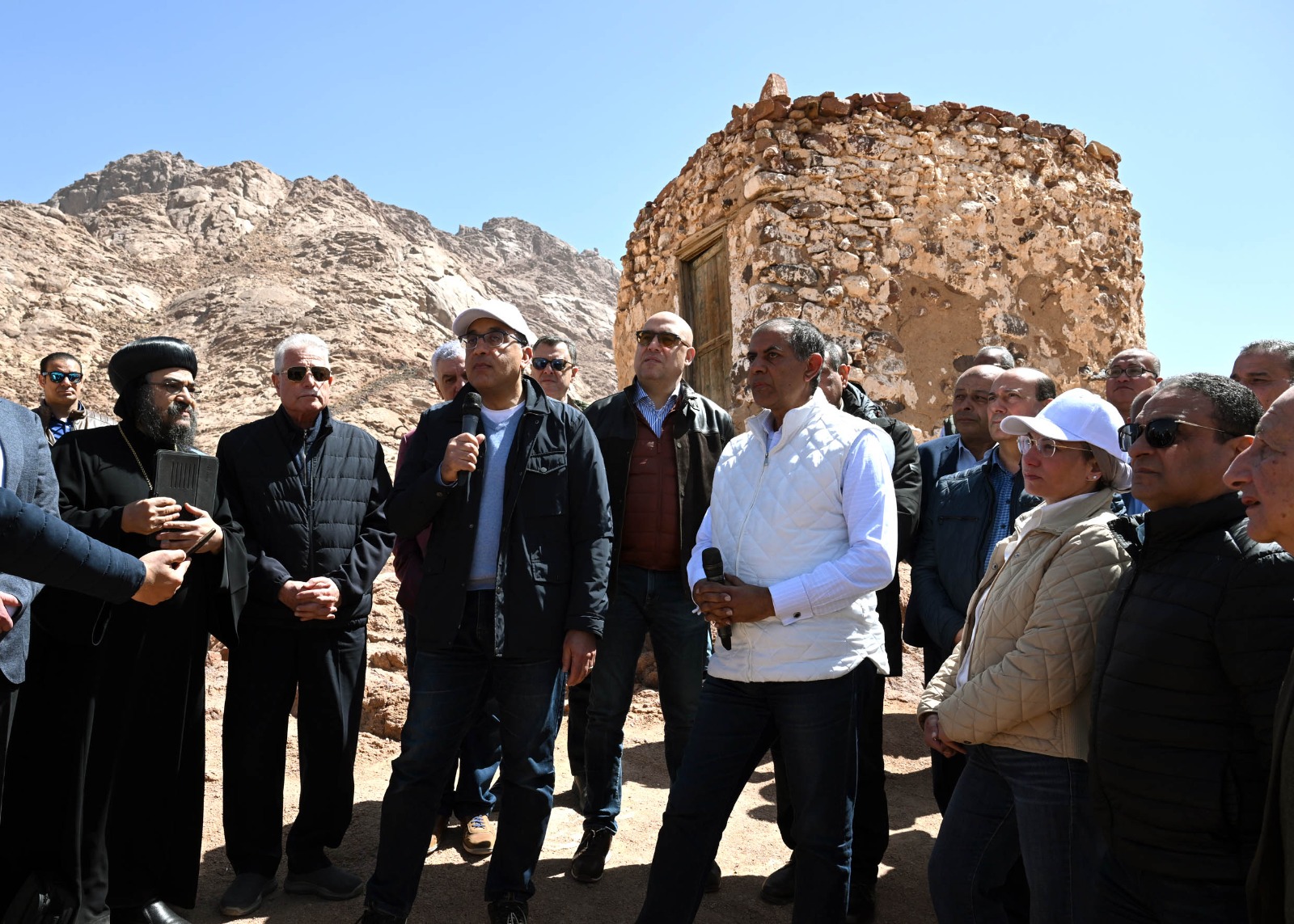 رئيس الوزراء يصعد أعلى تبة هارون ويستمع لوجهة النظر الدينية والأثرية حول جبل التجلي (صور)