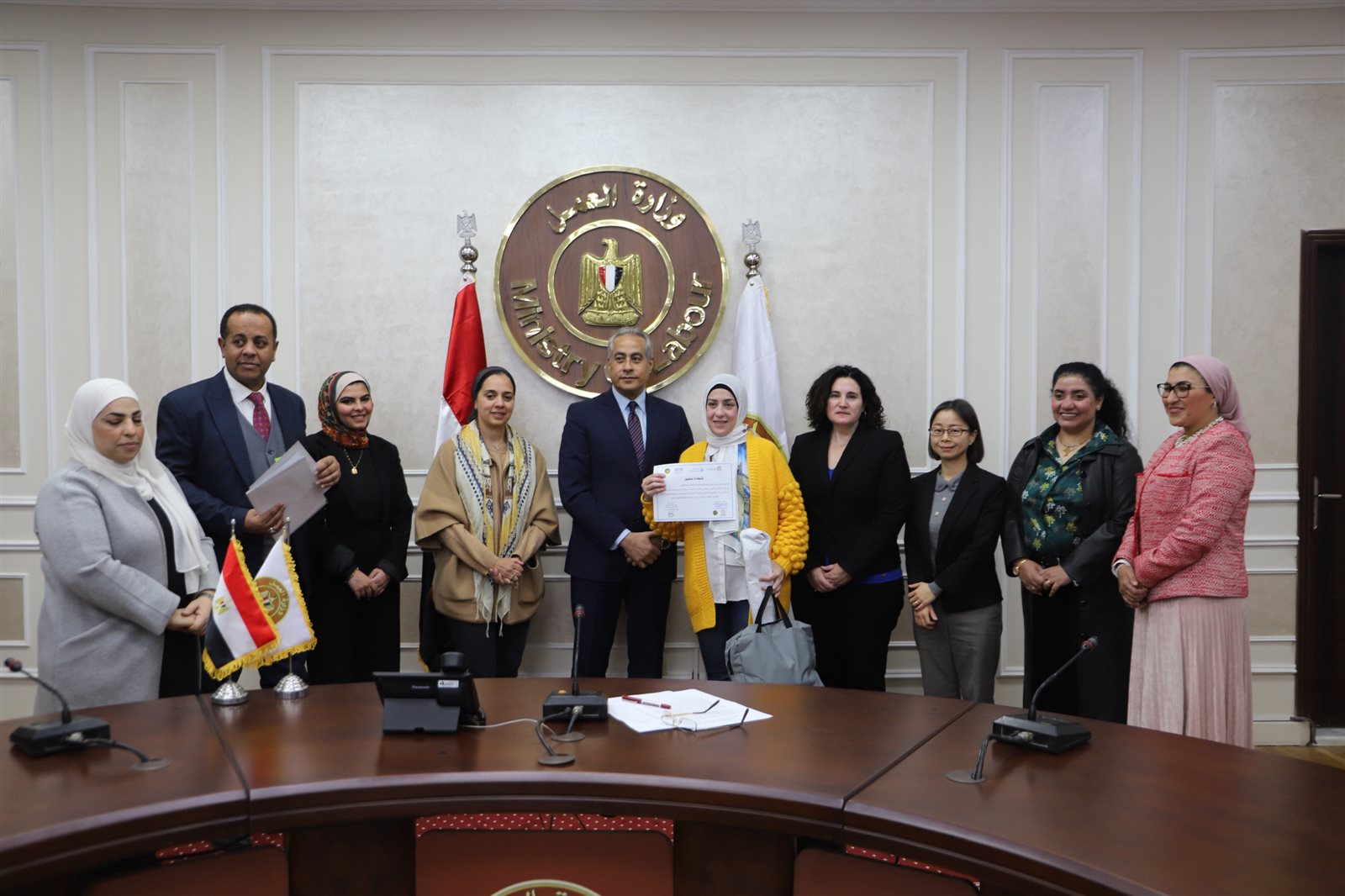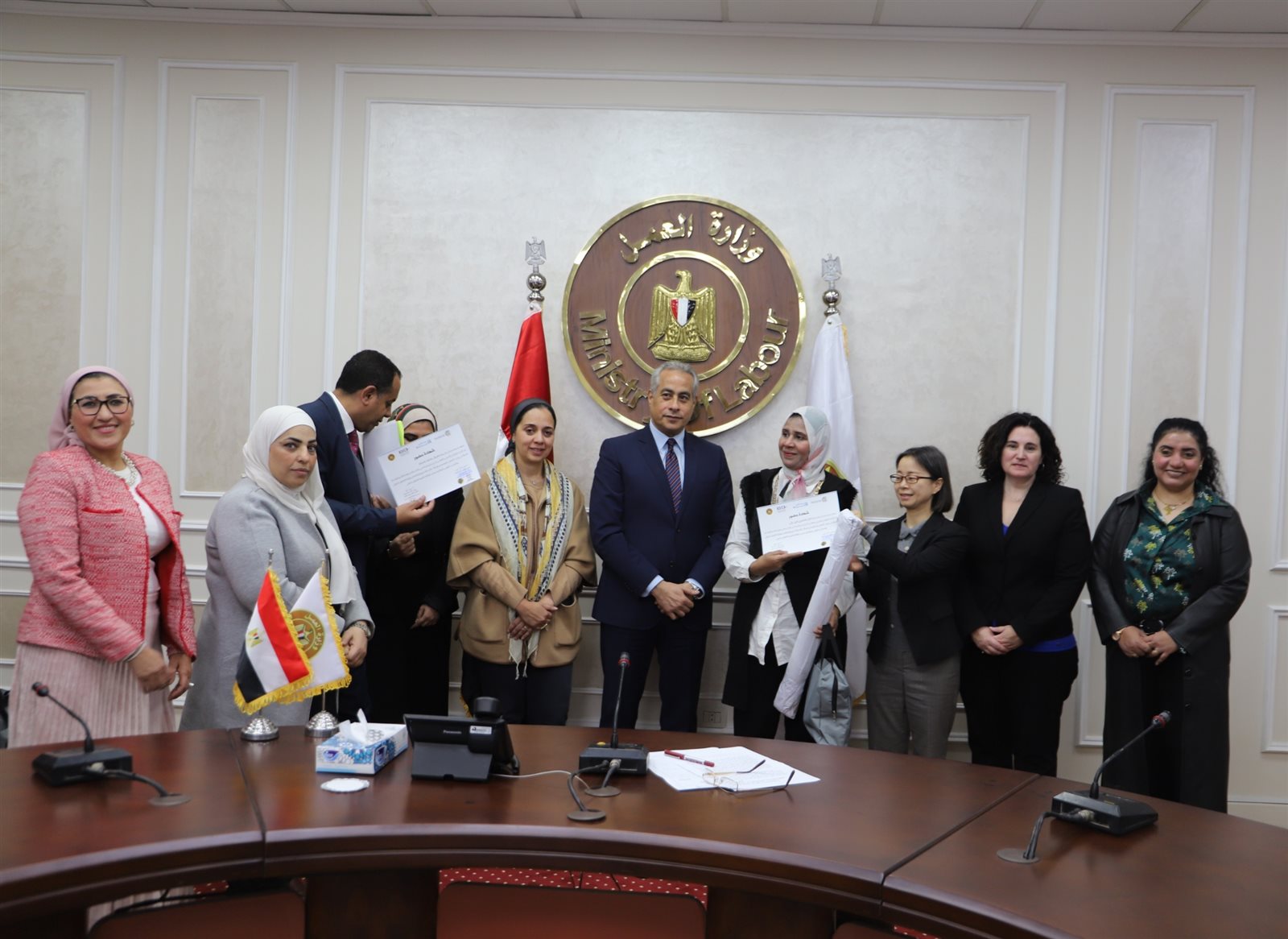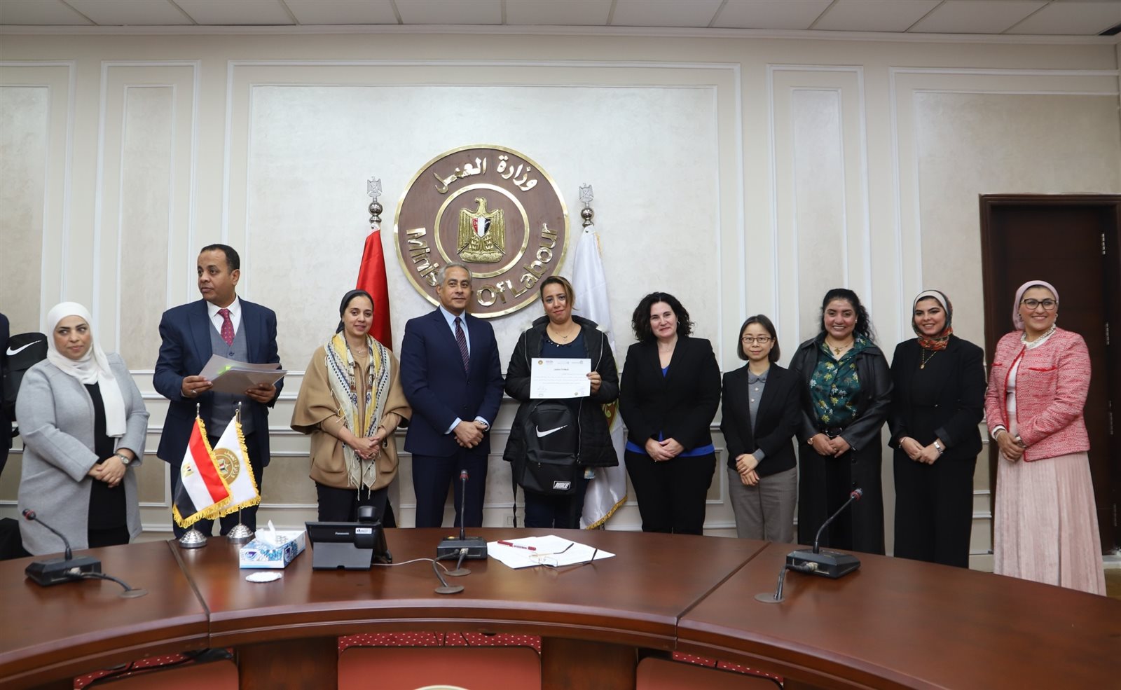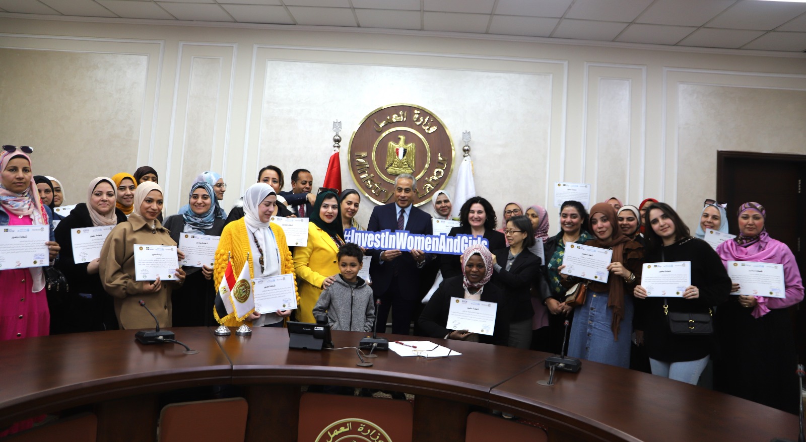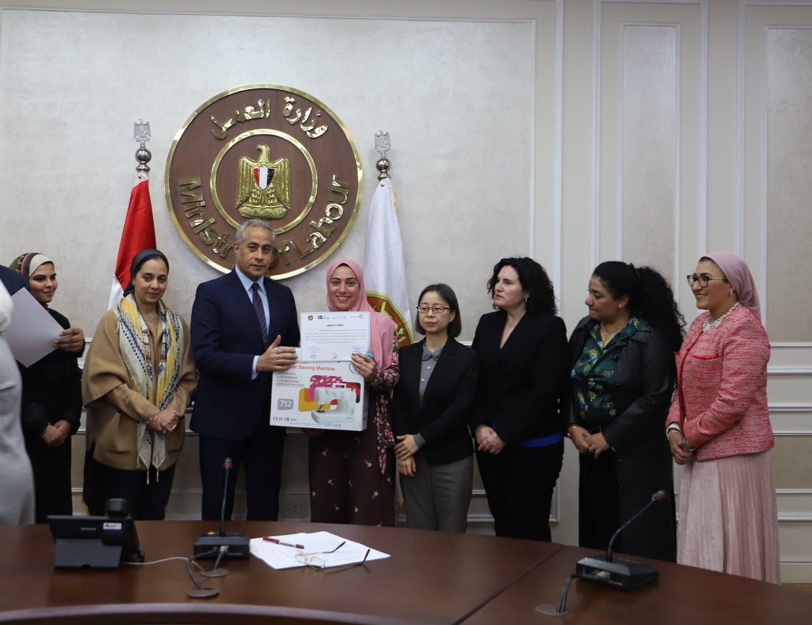 جاء حديث الوزير، اليوم، بديوان عام الوزارة، خلال تسليمه شهادات تقدير وجوائز لـ 25 مُتدربة من خريجي مركز تدريب مهني شهداء الكتيبة 103 صاعقة بالشرابية، في إطار مشروع تُنفذه "وحدة المساواة بين الجنسين" بوزارة العمل مع هيئة الأمم المتحدة للمرأة، وشركة قدرة للتنمية والحلول التكنولوجية للتعليم، بتمويل من هيئة التعاون الدولي الكورية "كويكا "، والوكالة السويدية "سيدا"، والذي يستهدف تدريب 300 سيدة في 3 محافظات هي: الأسكندرية، وبني سويف، والقاهرة..