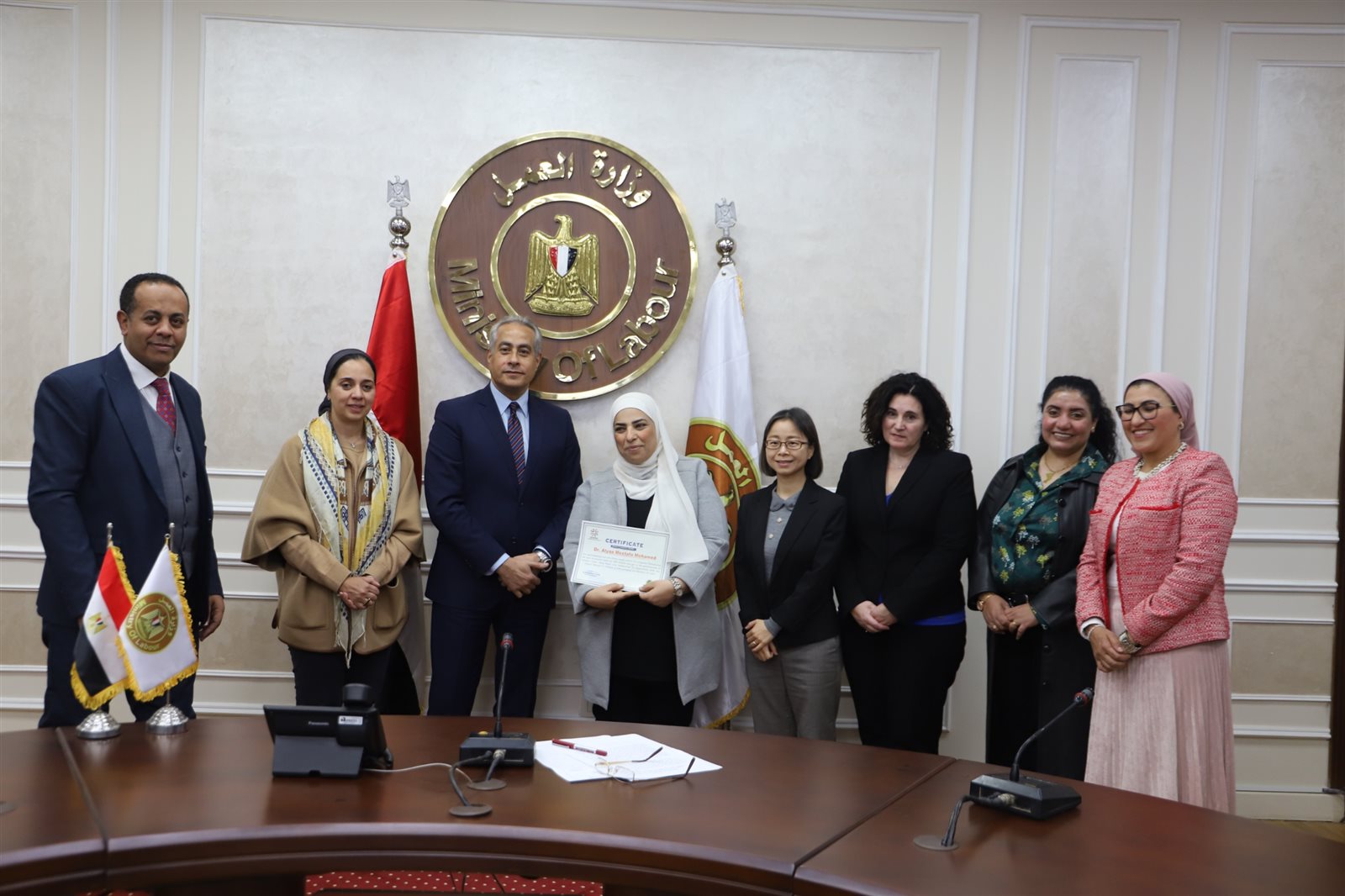 اللقاء حضرته كرستين عرب المدير القُطري لهيئة الأمم المتحدة بمصر، وإنجي أمين مُحلل برامج التمكين الاقتصادي للمرأة، ومها راتب مسئول اتصال بالهيئة، وجنوينج يونج كيم مدير الهيئة الكورية للتعاون الدولي والتنمية، وميار طارق مدير برامج بالهيئة، ونشوى صلاح أيوب المدير التنفيذي لشركة قدرة، ود.إيمان النشرتي استشاري التدريب، وسارة علي مسئول برامج، وأدهم محمود خاطر مسئول ميداني، وعبد الحميد محمد مسئول مشتريات بـ"قدرة"، ومي محمود مدير مركز الأعمال بالمجلس القومي للمرأة.. وأكدوا جميعًا حرصهم على التوسع في العمل مع وزارة العمل في مجال تمكين المرأة خاصة وأن 60% من الخريحات من المُعيلات، ومسؤولات على الإنفاق على أُسرهم، وهو ما يؤكد على أهمية الاستمرار في "التعاون "، والتطلع للوصول بعدد المتدربات إلى 3000، بحسب طموحات وزير العمل، من هذا "المشروع "، الذي لا يكتفي بالتدريب فقط، بل مساعدة المُتدربات على إقامة مشروعات صغيرة، أو التأهيل للعمل في مجالات تخصصهن..