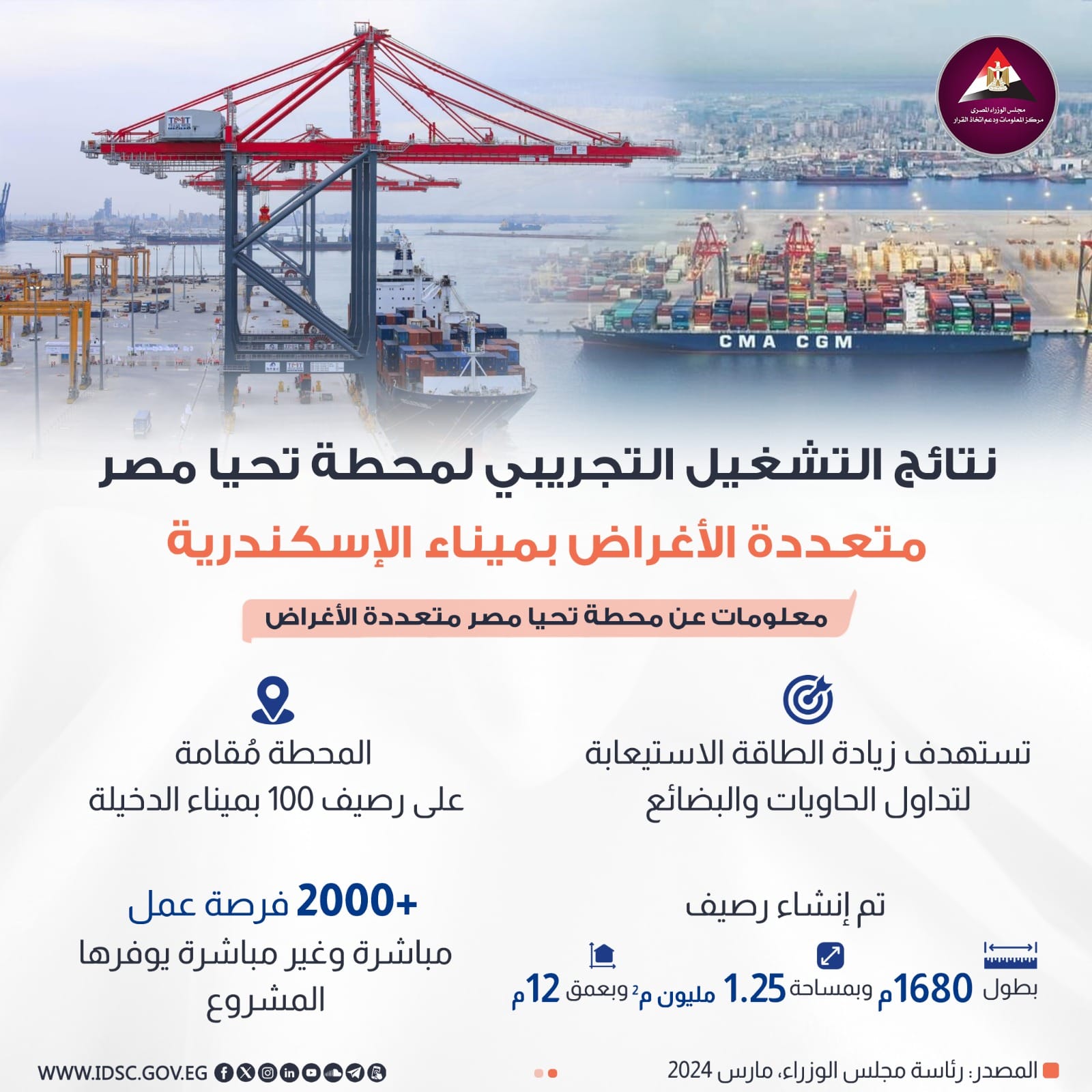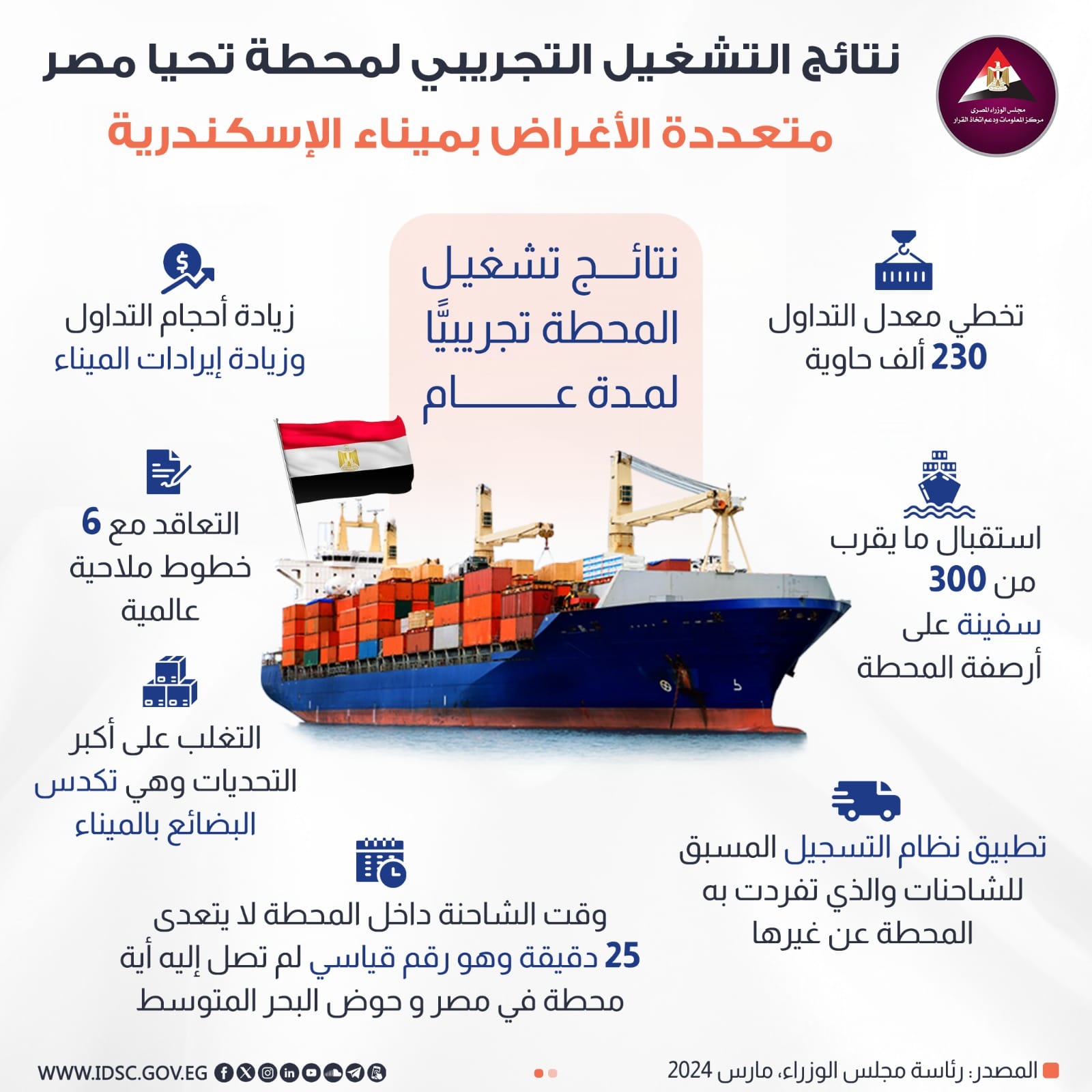 نتائج التشغيل التجريبي لمحطة تحيا مصر بميناء الإسكندرية (إنفوجراف)