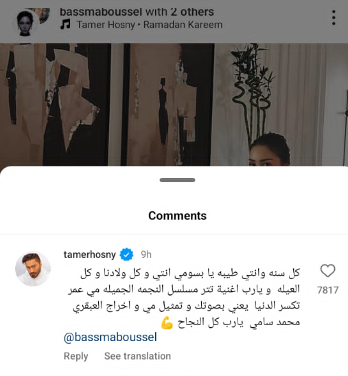 وكتب تامر حسني تعليقا عبر حسابه الشخصي بموقع انستجرام، جاء فيه: كل سنة وأنتي طيبة يا بسومي، أنتي وكل ولادنا وكل العيلة.