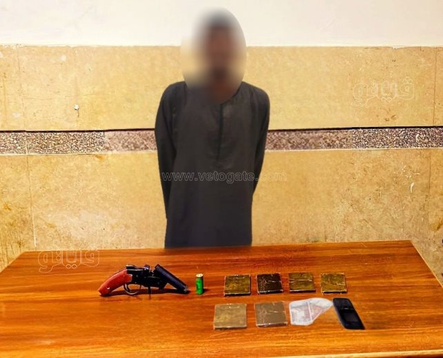 وفي مديرية أمن الأقصر؛ ضبط (عنصر إجرامي "له معلومات جنائية")، وبحوزته (2 كيلو جرام لمخدر الحشيش- كمية لمخدر الشابو- فرد محلي وطلقة).