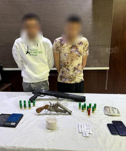 وفى مديرية أمن الجيزة؛ ضبط (عاطلان "لهما معلومات جنائية")، وبحوزتهما (بندقية خرطوش وعدد من الطلقات - فرد محلي - كمية لمخدر الهيروين - ميزان حساس).