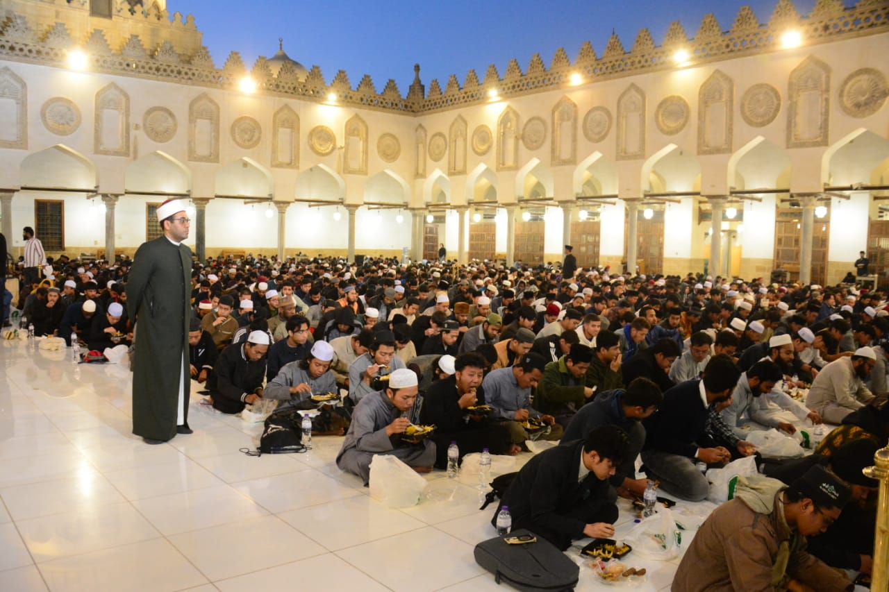 جمعهم حب العلم، لحظة إفطار الطلاب الوافدين والأجانب في الجامع الأزهر (صور)