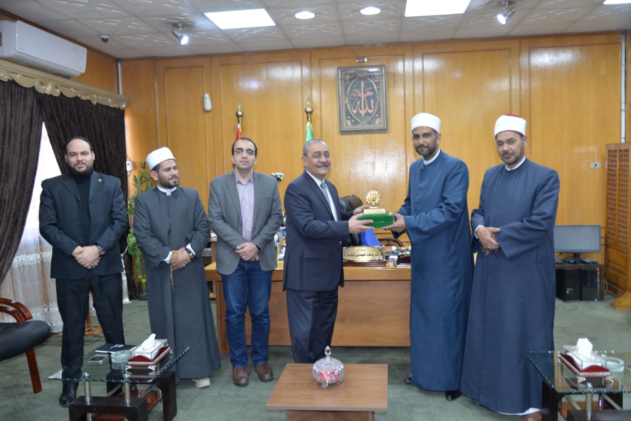 ورحب محافظ الإسماعيلية بوفد الأزهر الشريف وعلمائه الأجلاء، مشيدًا بدورهم الفعَّال في نشر وسطية وسماحة الإسلام.