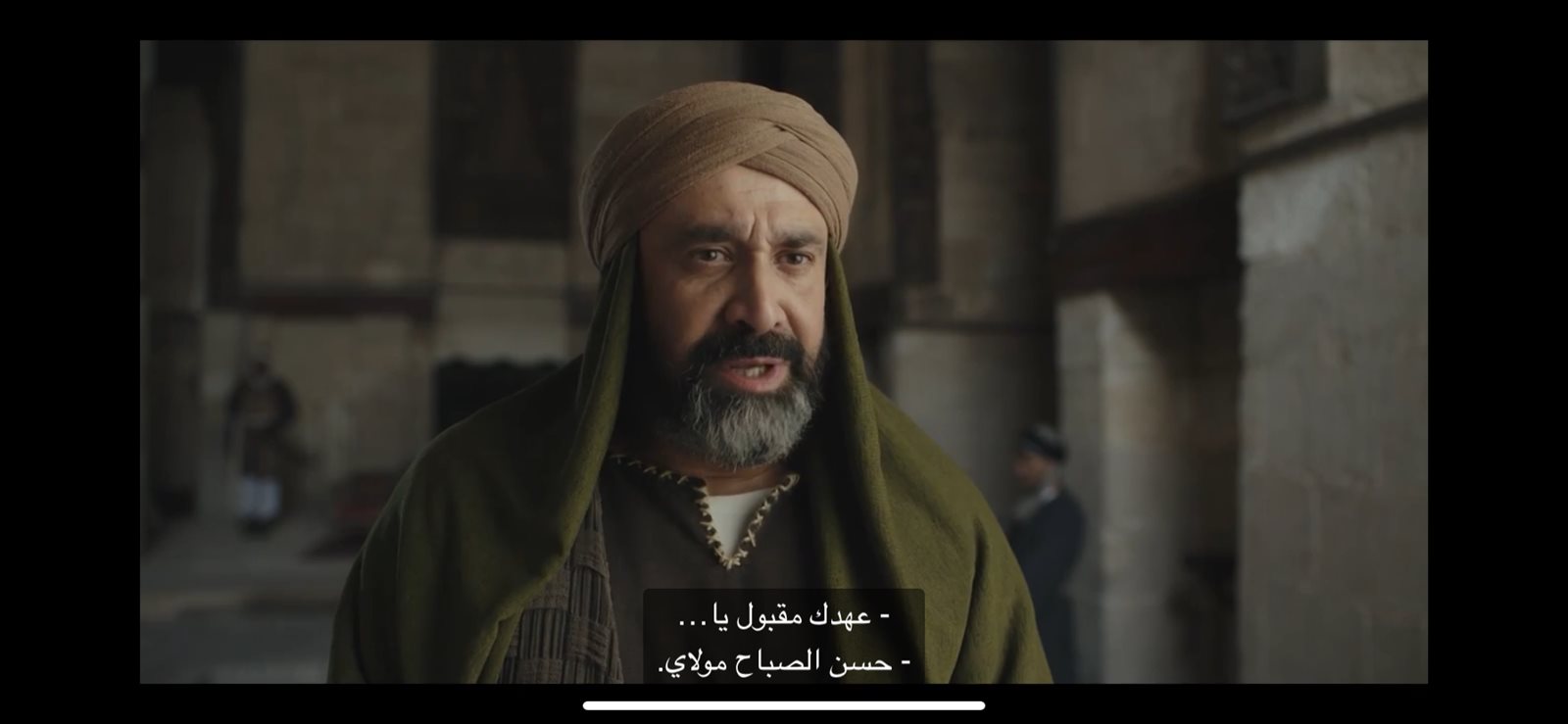 وخلال اللقاء أيضا، يسأل الصباح الخليفة الفاطمي عن خليفته من بعده ليخبره بأنه اختار الأمير نزار ولي عهده ليكون خليفة الفاطميين من بعده، وفي هذه الأثناء يصل الوزير بدر الدين الجمالي وزير الفاطميين لبلاط الخليفة ويفاجئ بتواجد الصباح والذي لا يرغب في وجوده بالقاهرة كما وضحت الحلقة الماضية.