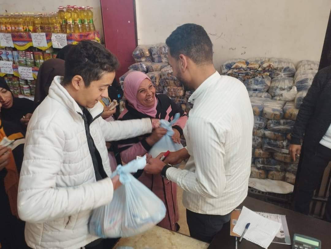 حيث يتم يوميا توزيع ٢٥٠ شنطة أو حسب الكمية المتوفرة من قبل إدارة تموين نجع حمادى.