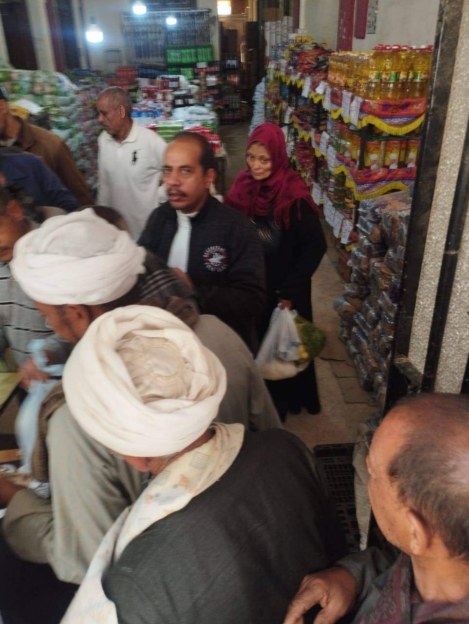 وان الرقابة على توزيع السلع تعمل بصفة مستمرة بالتنسيق مع ادارة تموين نجع حمادى لكى تصل السلع الى مستحقيها من المواطنين والقضاء على احتكار وجشع التجار والقضاء على السوق السوداء.