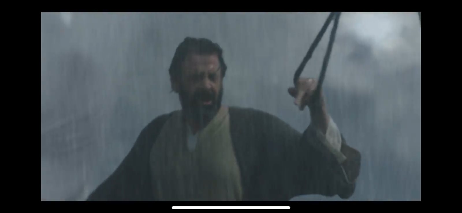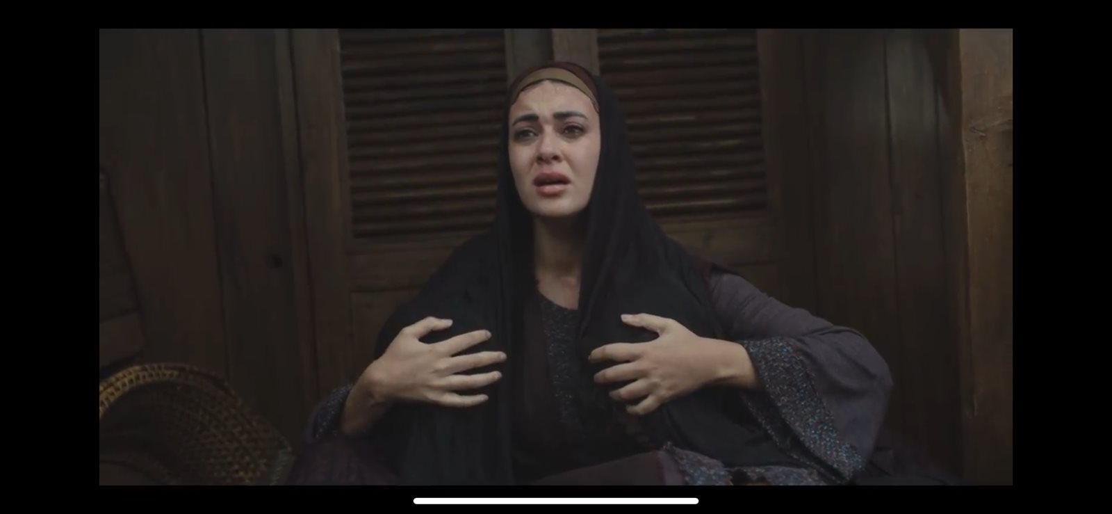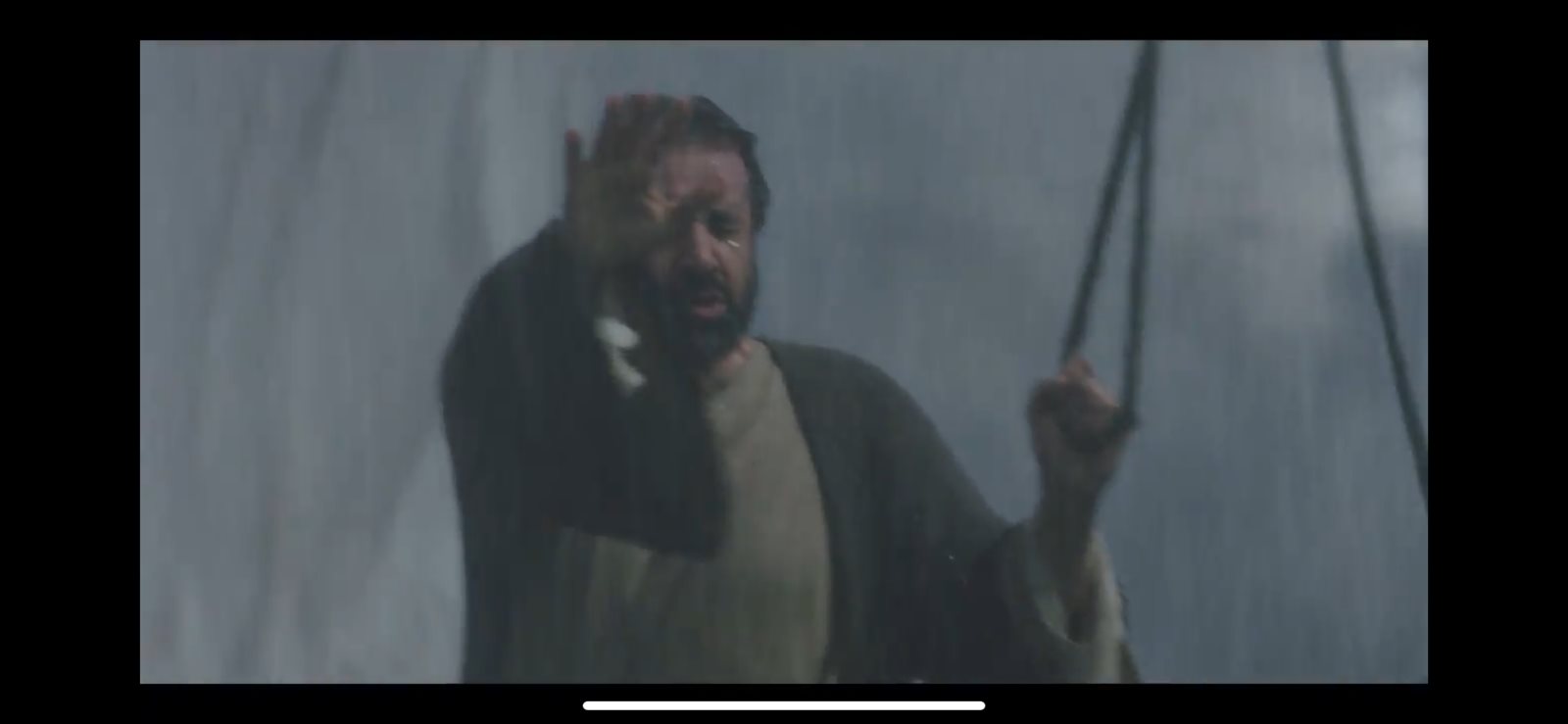 وأثناء سفر الصباح وأسرته تضرب عاصفة قوية البحر، ويبدو اقتراب الموت من كل من على المركب، إلا أن الصباح يبدأ في ترديد كلمات ويحاول انقاذ المركب وذلك حتى تهدأ العاصفة، ليخبر من معه بضرورة التوجه إلى عما في الشام وليس المغرب.