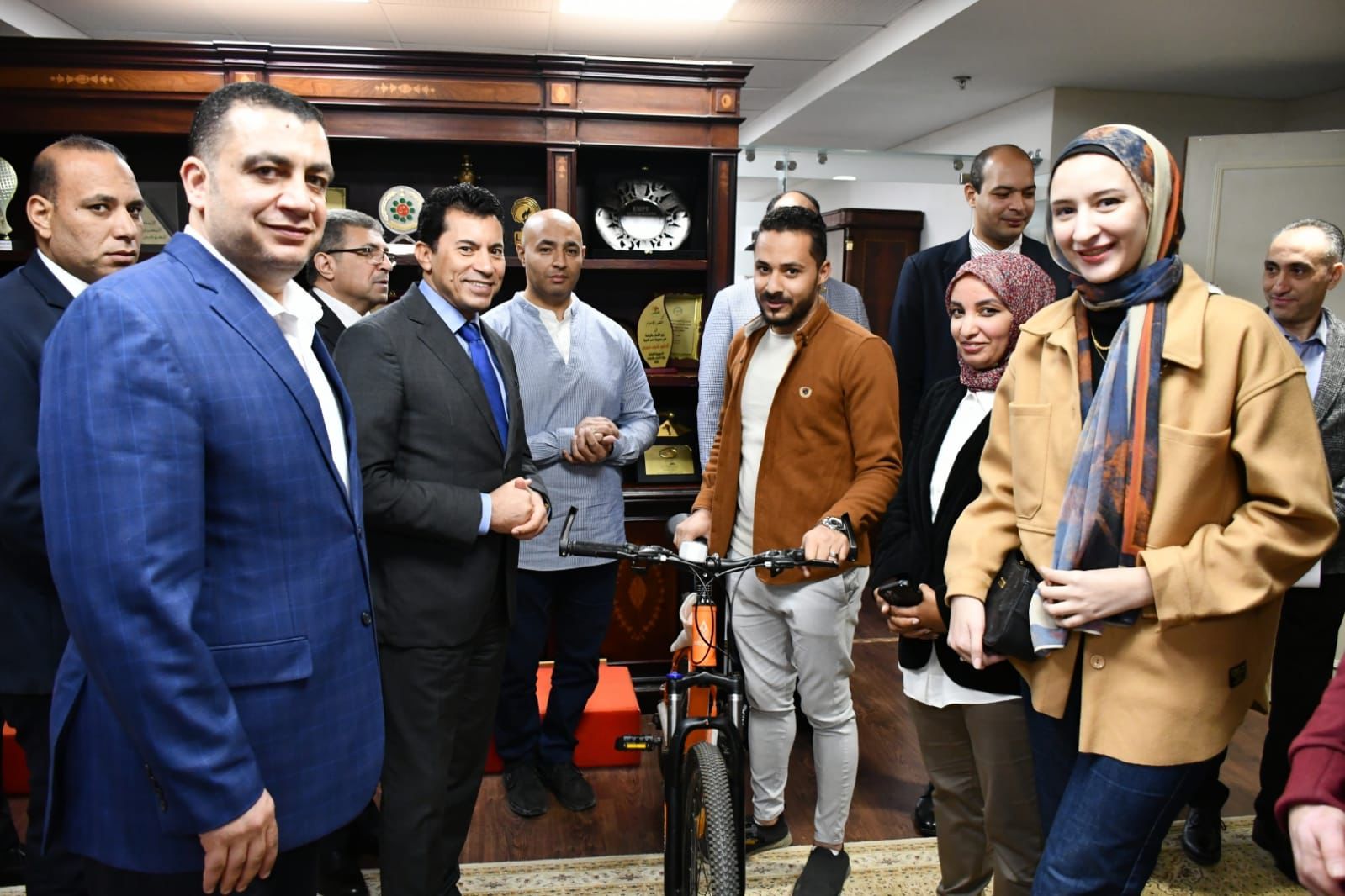 وزير الرياضة يسلم دراجات للفائزين بمسابقة «30 عجلة × 30 يوم»