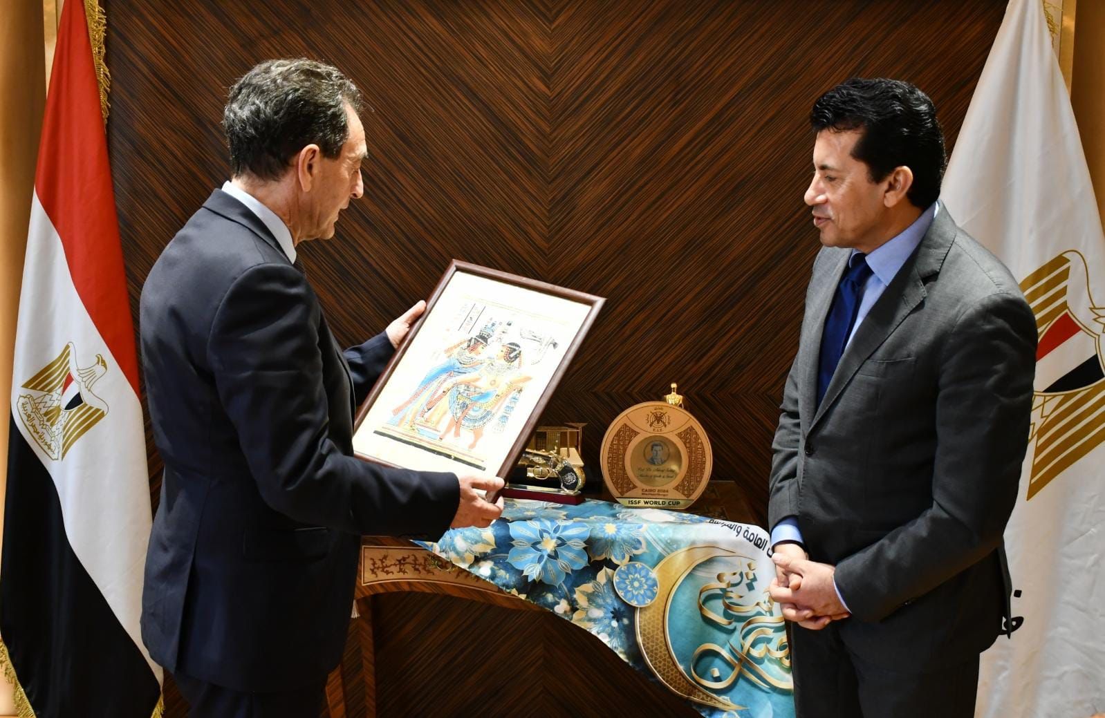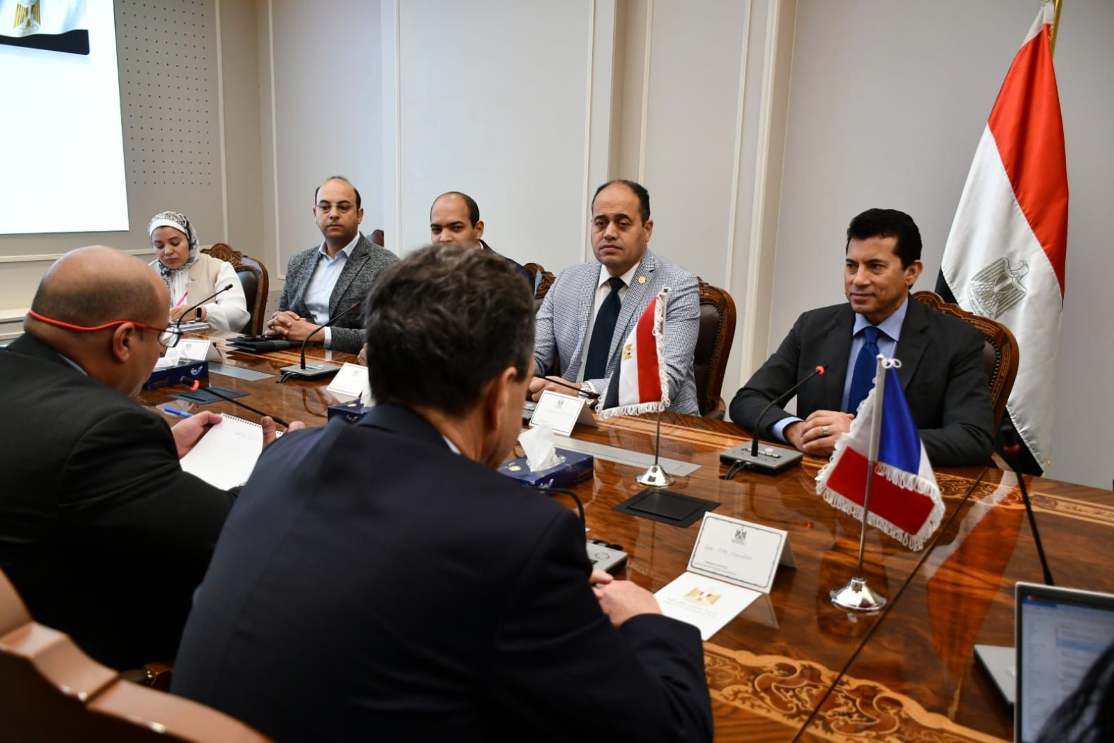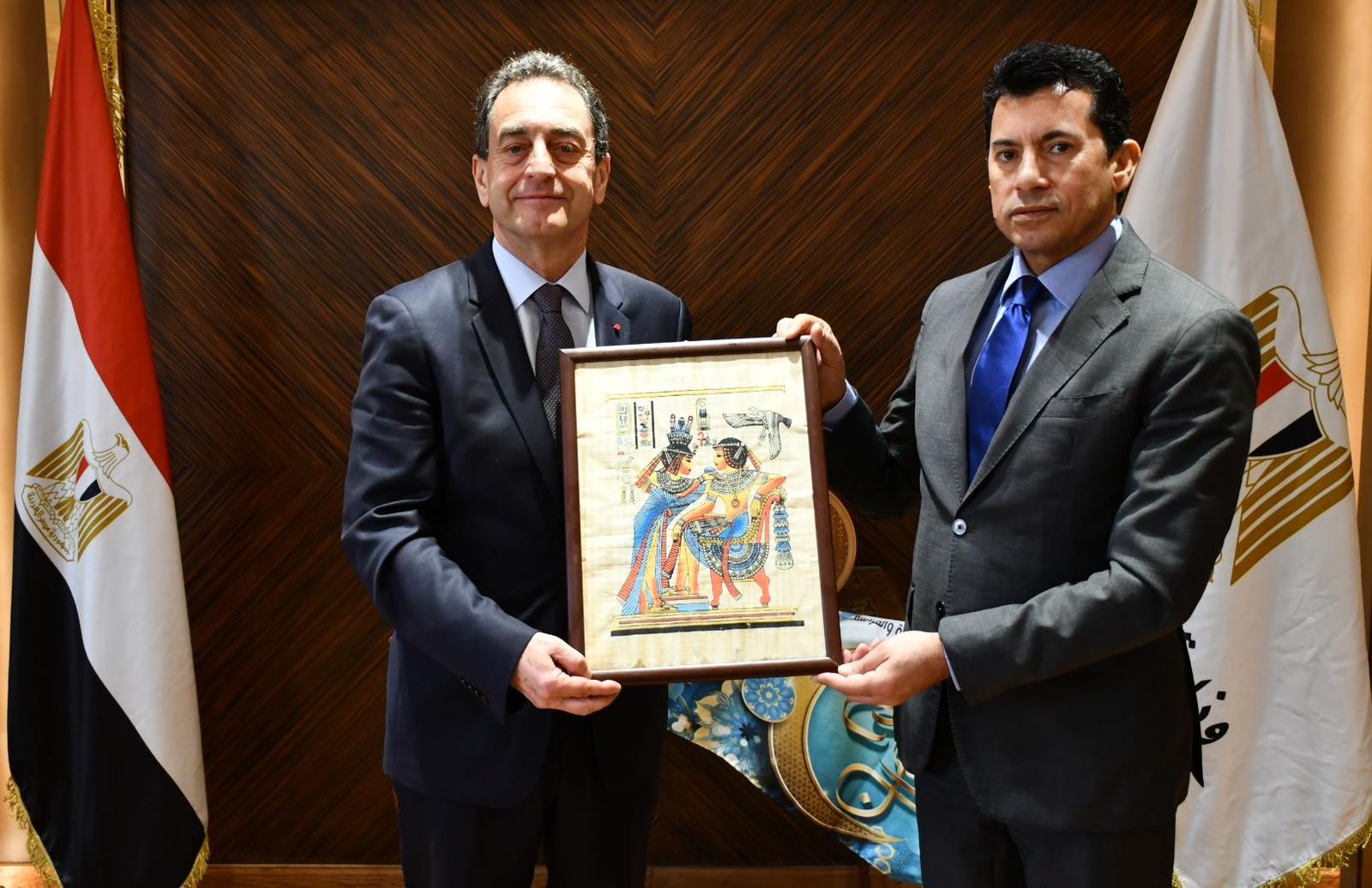 وزير الرياضة يناقش مع السفير الفرنسي استعدادات مشاركة البعثة المصرية بدورة الألعاب الأولمبية