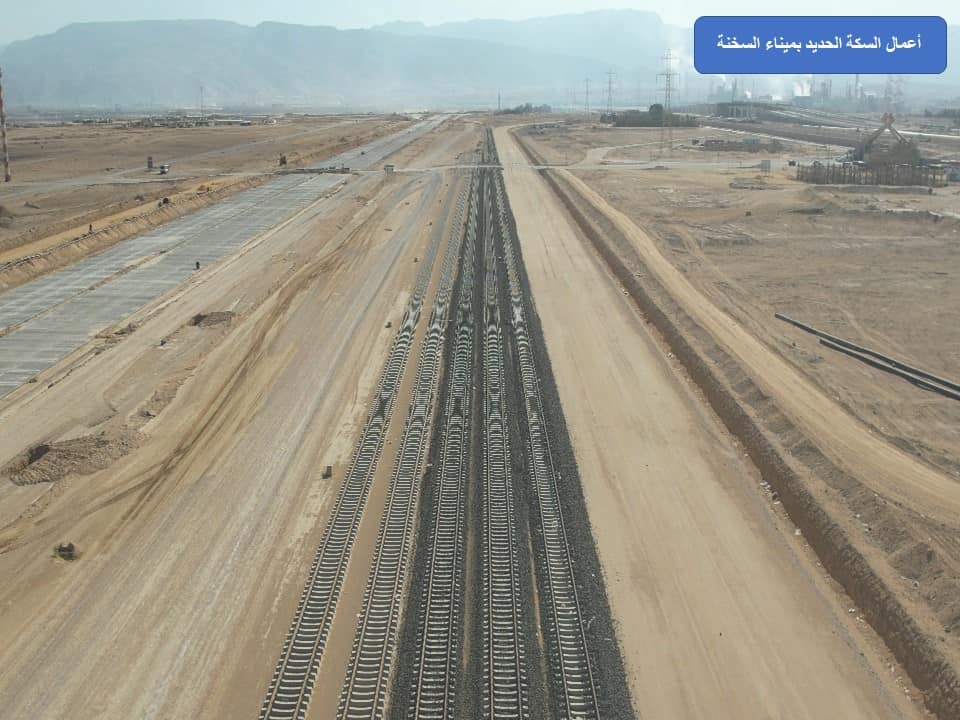 ويعد ربط الميناء بـخطوط السكك الحديدة أحد أبرز المشروعات التي تسعى الوزارة إلى الانتهاء منها وذلك من أجل الاستفادة الكبيرة من قادة السكة الحديد على نقل كميات كبيرة من البضائع في وقت أقل وأسرع وبلغت نسبة تنفيذ أعمال السكك الحديدية(قطار كهربائي/ ديزل ) بطول 34 كم 35% والأرصفة 97 % وحواجز أمواج الميناء 99 % والطرق الداخلية 75% وحيث بلغت النسبة الاجمالية لتنفيذ مشروع التطوير 93.50%.