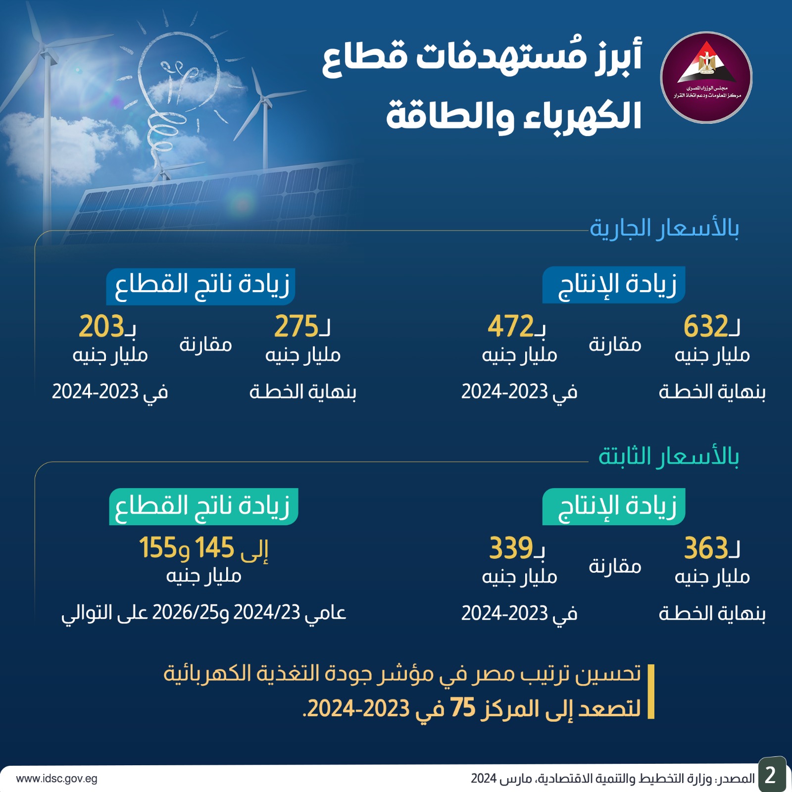 يأتي ذلك بعد أن أصدرت وزارة التخطيط والتنمية الاقتصادية، تقريرًا حول مستهدفات واستثمارات قطاع الكهرباء والطاقة المُتجدِّدة بخطة العام المالي 2023/2024، بإجمالي استثمارات 81.4 مليار جنيه.