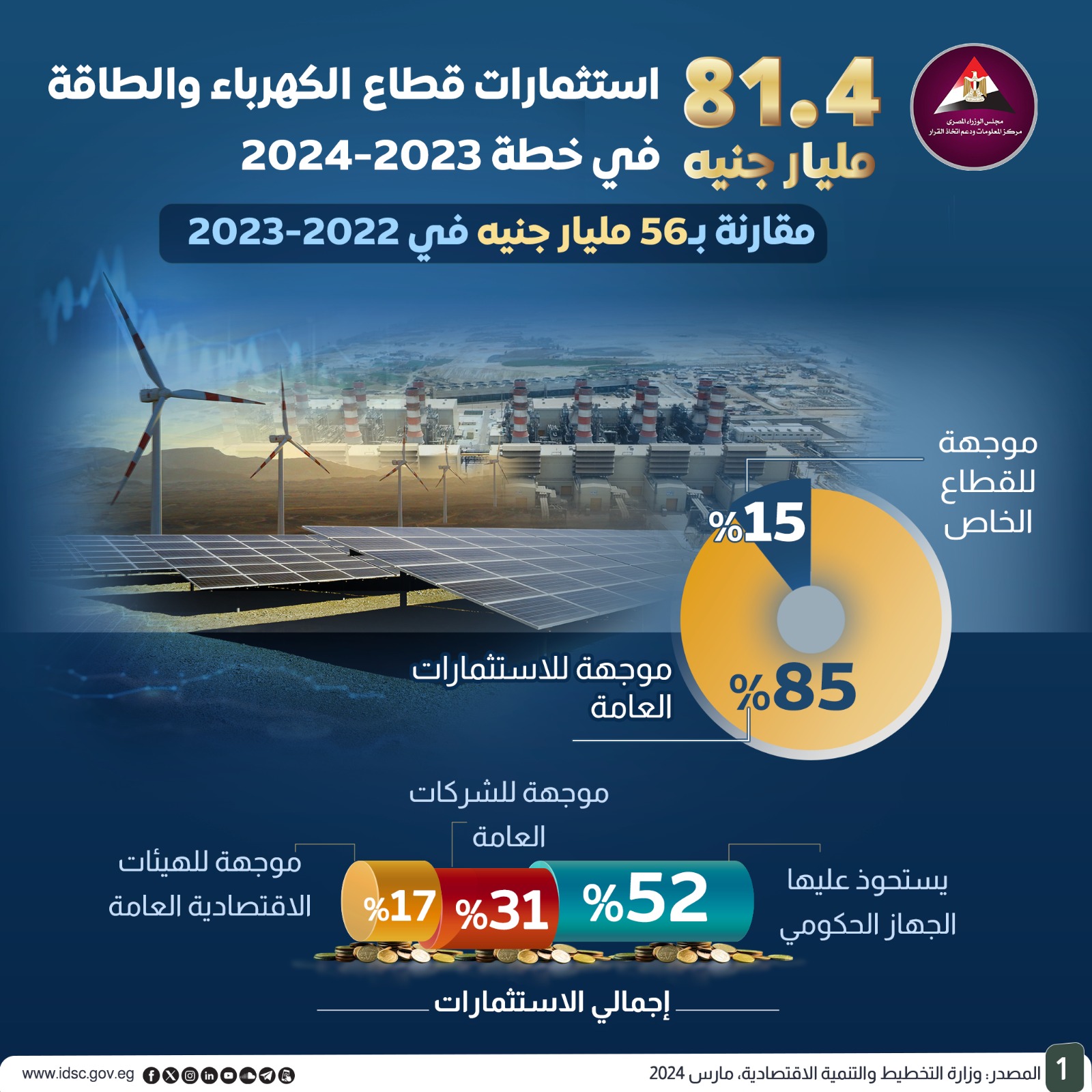 81.4 مليار جنيه استثمارات قطاع الكهرباء والطاقة في خطة 2023-2024 (إنفوجراف)