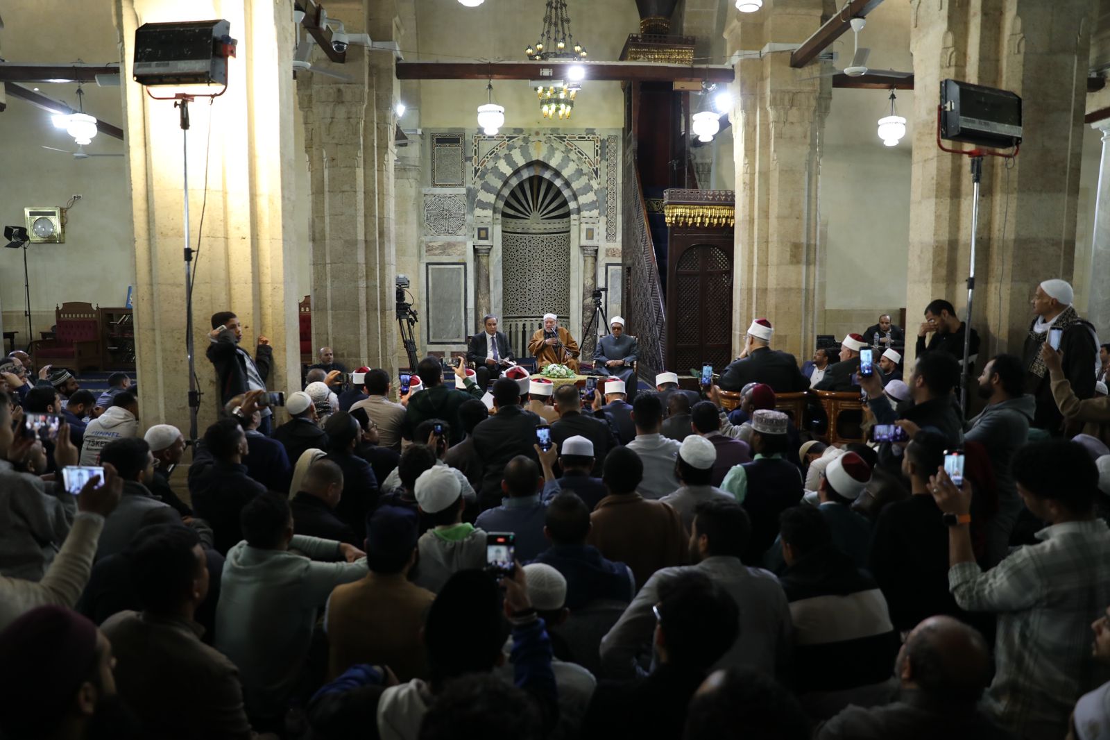 عقد الجامع الأزهر في الليلة الخامسة من شهر رمضان المبارك عقب صلاة التراويح «ملتقى الأزهر.. قضايا إسلامية»، بمشاركة فضيلة الدكتور أحمد عمر هاشم، عضو هيئة كبار العلماء بالأزهر، والدكتور عبد الفتاح العواري، عميد كلية أصول الدين السابق وعضو مجمع البحوث الإسلامية، والدكتور عبد المنعم فؤاد، المشرف العام على الأنشطة العلمية بالرواق الأزهري، وذلك بحضور الدكتور محمد الضويني، وكيل الأزهر، ونخبة من علماء وقيادات الأزهر الشريف، والمصلين الذين حضروا إلى الجامع من شتى ربوع مصر ومن مختلف الدول العربية والإسلامية من المقيمين في مصر.، وناقش الملتقى اليوم «الأمن الفكري.. رؤية قرآنية».