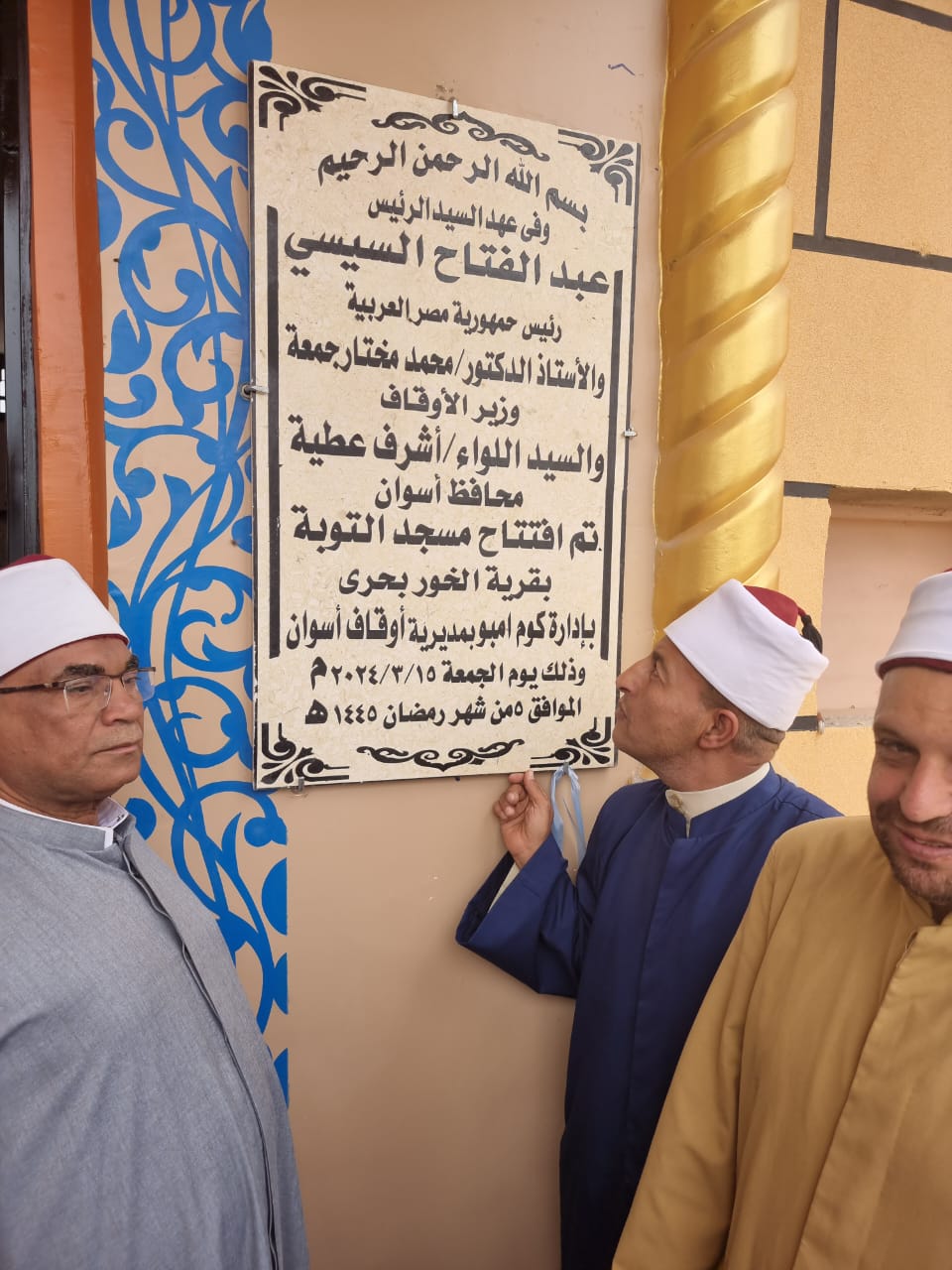 وأوضح الشيخ حنفي، أن المسجد الآخر المفتتح اليوم، هو مسجد التوبة من المساجد المنشأة حديثًا بالجهود الذاتية بقرية الخور بحري بمركز كوم أمبو، على مساحة 221 متر مربع، بتكلفة تقدر بنحو 3 ملايين و700 ألف جنيه تقريبًا.