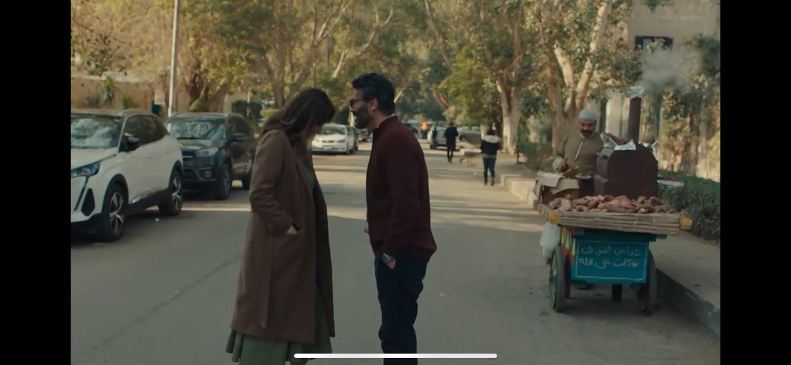 وخلال أحداث الحلقة، يخرج مختار أبو المجد غاضبا من موقف معظم ملاك منازل المعادي وتخرج معه مي عبد العزيز وأثناء سيرهما في شوارع المعادي يتغزل في المكان الذي عاش فيه، ويقول: "فى مشربياتك.. ريحة ماورد.. وجنّة يا قاهرة"، لتردد مي عبد العزيز مع مختار أبو المجد كلمات شعر فؤاد حداد.