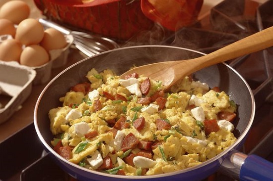 طريقة عمل البيض بالسجق: