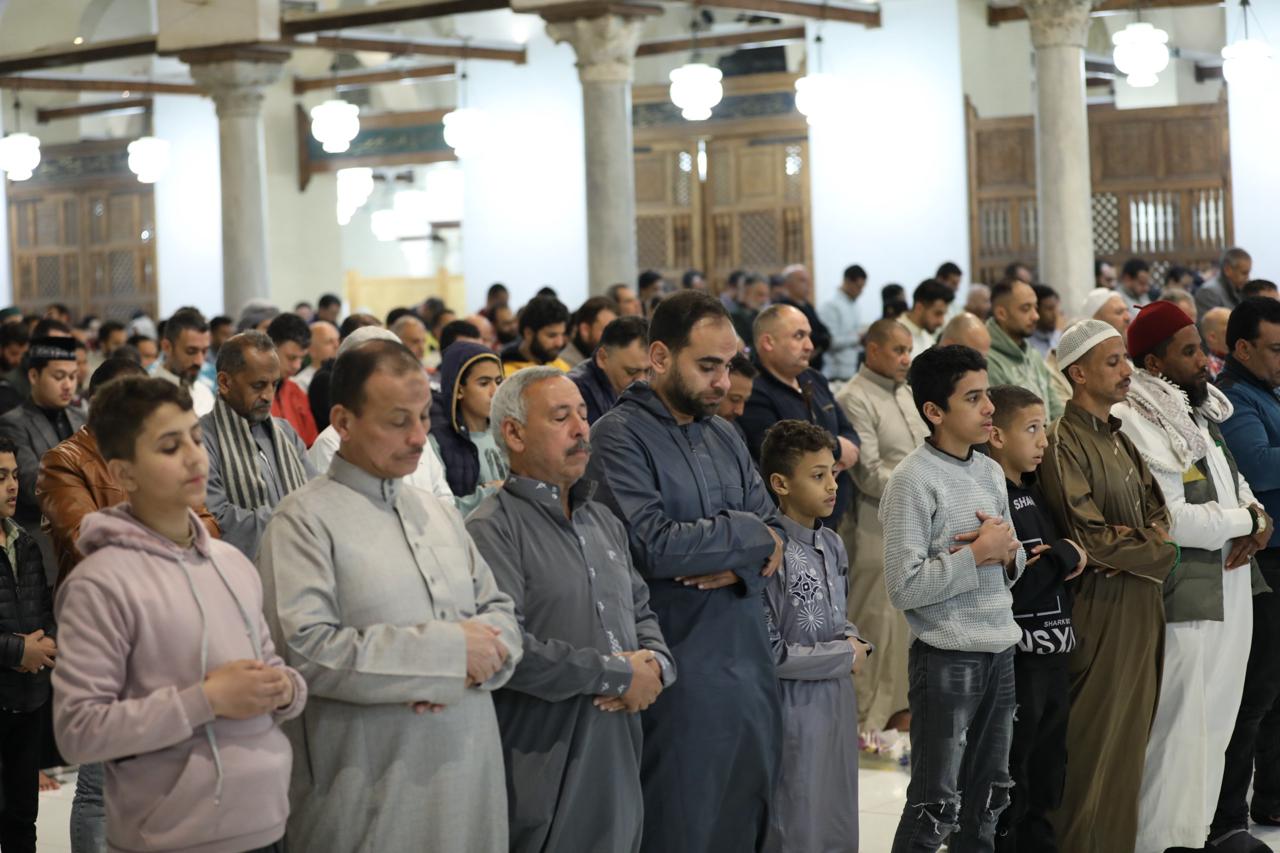 وتقدم المصلين الدكتور محمد الضويني، وكيل الأزهر، والدكتور عباس شومان، وكيل الأزهر السابق والأمين العام لهيئة كبار العلماء، والدكتور هاني عودة، مدير عام الجامع الأزهر، والشيخ حسن عبد النبي، وكيل لجنة مراجعة المصحف، ونخبة من علماء وقيادات الأزهر، وتقام صلاة العشاء من سورة المائدة برواية حفص عن عاصم، وتقام صلاة التراويح من سورتي المائدة والأنعام برواية قالون عن نافع المدني «بقصر المنفصل وصلة ميم الجمع»، ورواية السوسي عن ابن عمرو البصري، ورواية خلف العاشر.