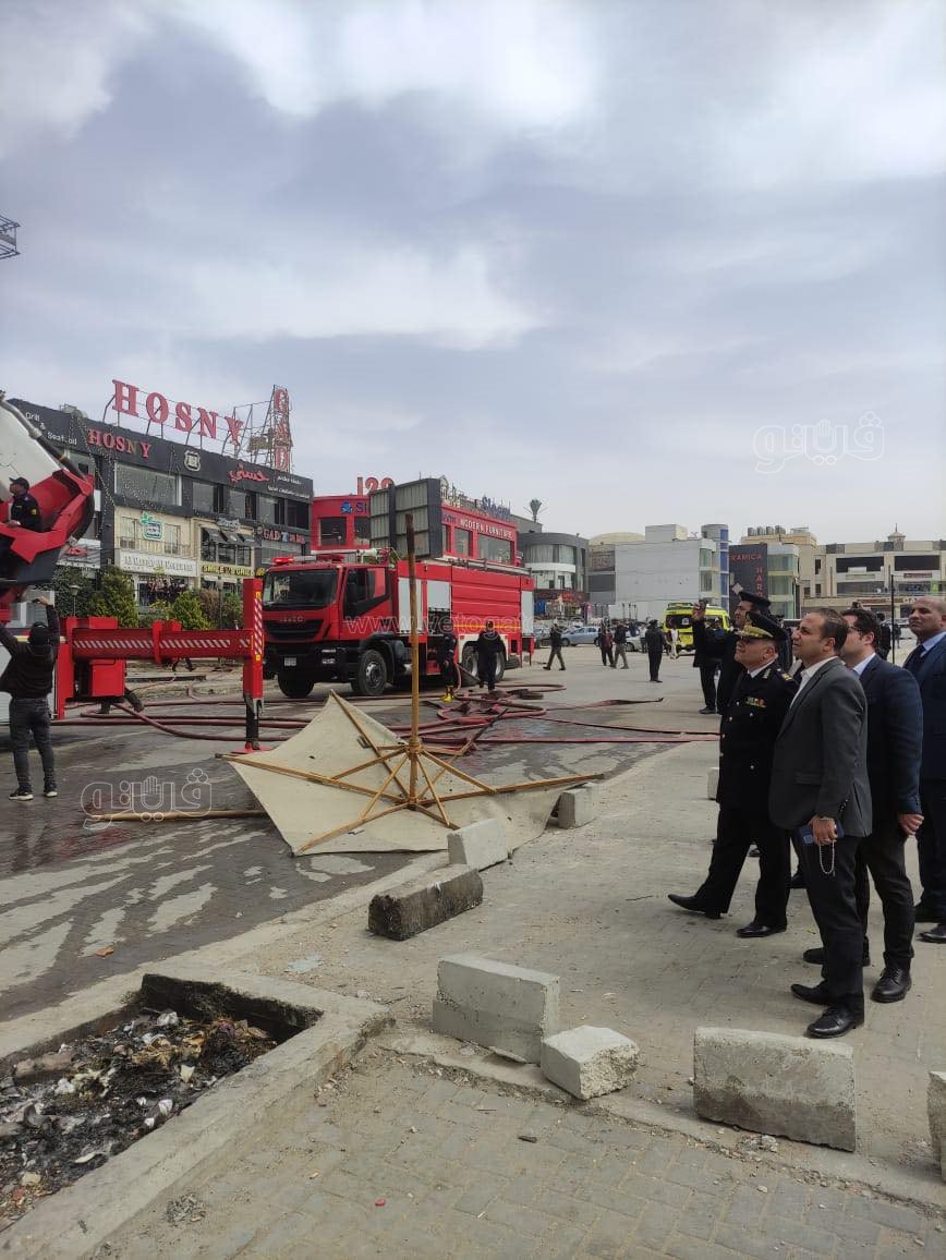 انتقلت قيادات الأمن إلى موقع حريق مول تجاري في شارع التسعين بالتجمع الخامس بالقاهرة الجديدة.