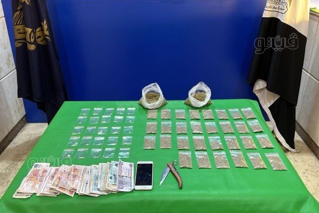 كما تم ضبط مبلغ مالى - سيارتين – 7 دراجات نارية – 68 هاتف محمول – 23 قطعة سلاح أبيض –3 ميزان حساس وتم اتخاذ الإجراءات القانونية.