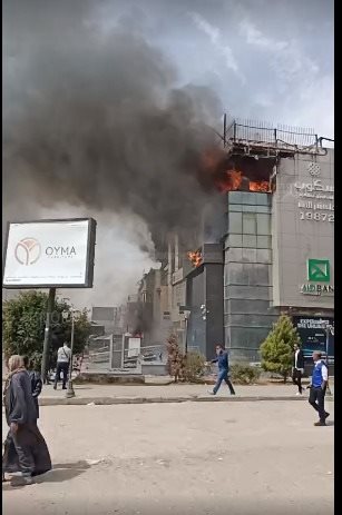 حريق نشب في مجمع للبنوك داخل مول تجاري