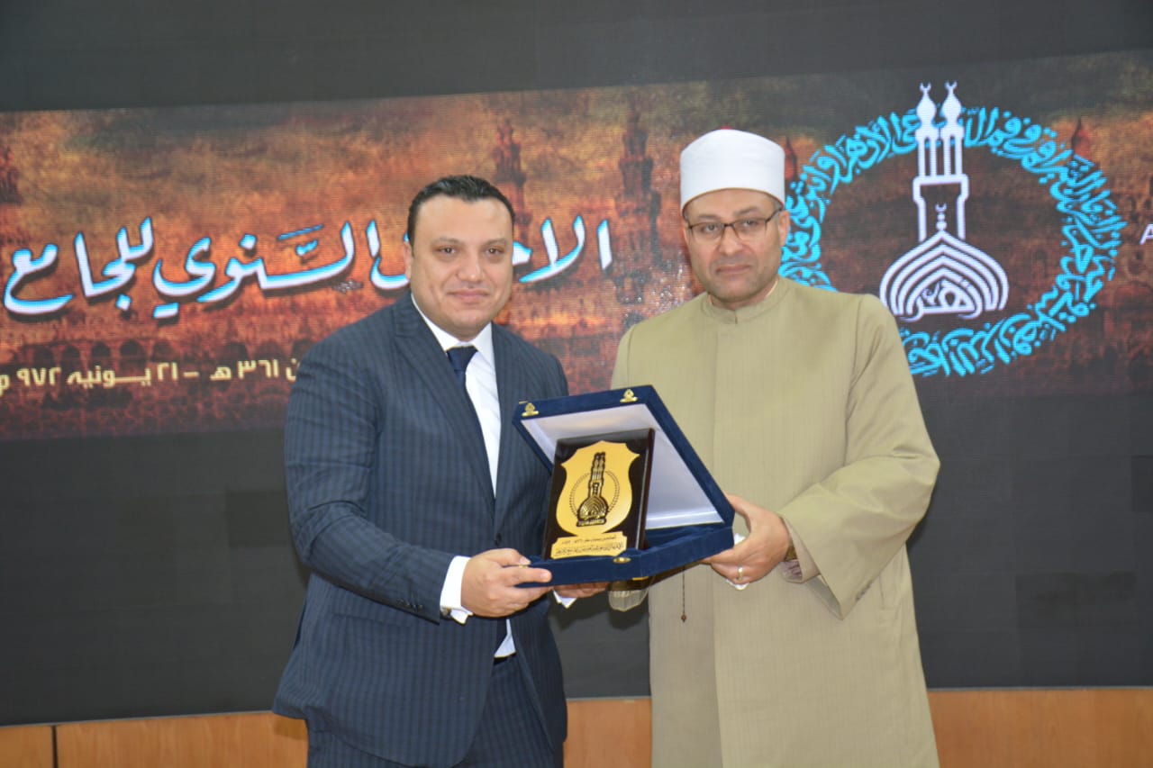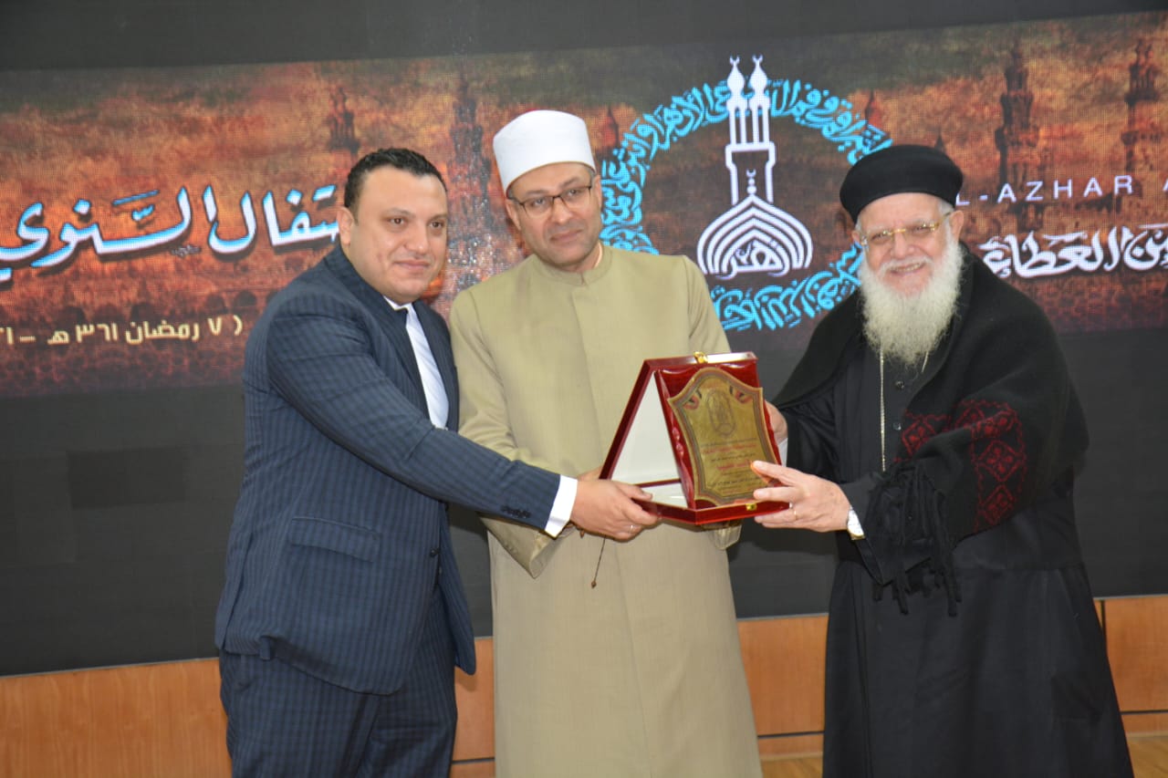 وفي نهاية الاحتفال أهدى رئيس قطاع المعاهد الأزهرية درع الأزهر الشريف إلى الدكتور أيمن مختار محافظ الدقهلية تسلمه نيابة عنه الدكتور هيثم الشيخ نائب المحافظ تقديرًا لدوره في تقديم الدعم المستمر لقطاع المعاهد الأزهرية بالدقهلية.