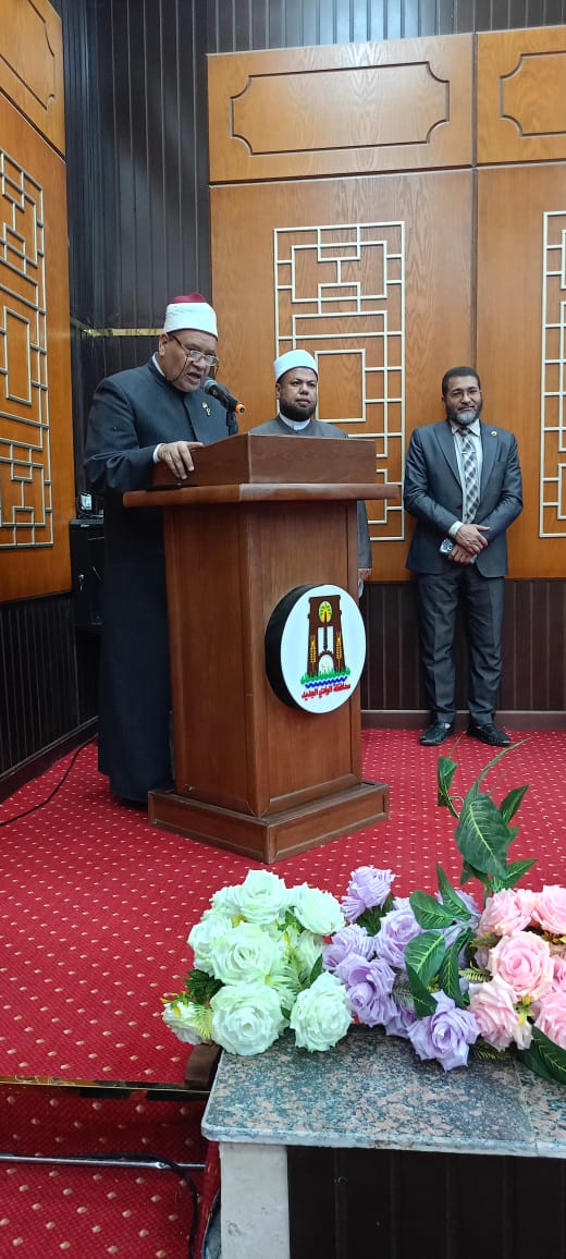 وأشار الدكتور بدوي فوزي محمد، أستاذ الحديث بجامعة الأزهر بأسيوط في كلمته إلي دور علماء الأزهر الشريف في السلم والحرب، وبناء وتنمية الوطن، وقال إن الأزهر الشريف هو كعبة العلم لضبط إيقاع الوسطية والفهم الصحيح لدين الله دون غلو أو تجاوز، فهو طاقة العلم التي لا ينكرها إلا جاحد أو حاقد أو حاسد، ويكفينا أن منابر مصر يعتليهاعلماء يقولون للناس جميعًا في لحظة واحدة اتقوا الله وأصلحوا ذات بينكم، فالأزهر هو أكبر مؤسسة علمية، دينية، إسلامية عالمية تضم طلاب من أكثر من ١٠٧ دول حول العالم ينهلون من معارفه ويتجرعون من علومه الوسطية.
