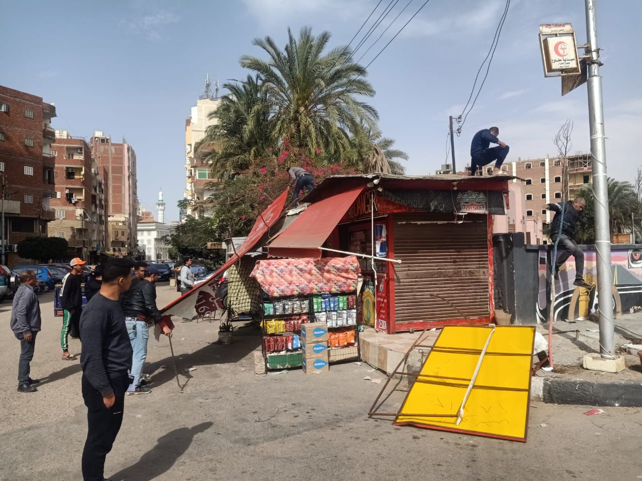 كما تمت إزالة إعلان بدون ترخيص بكشك مجاور سور الشهر العقارى بشارع السكة الحديد