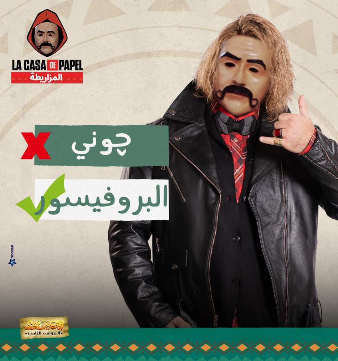 ويتولى جوني دور البروفيسور، مشابهًا للشخصية الرئيسية في المسلسل الإسباني، ويقود عصابة لسرقة البنك. يتعاون معه في هذه المهمة كل من هجرس، مربوحة، نفادي، وغيرهم، ويختار كل منهم اسمًا مستعارًا لنفسه.