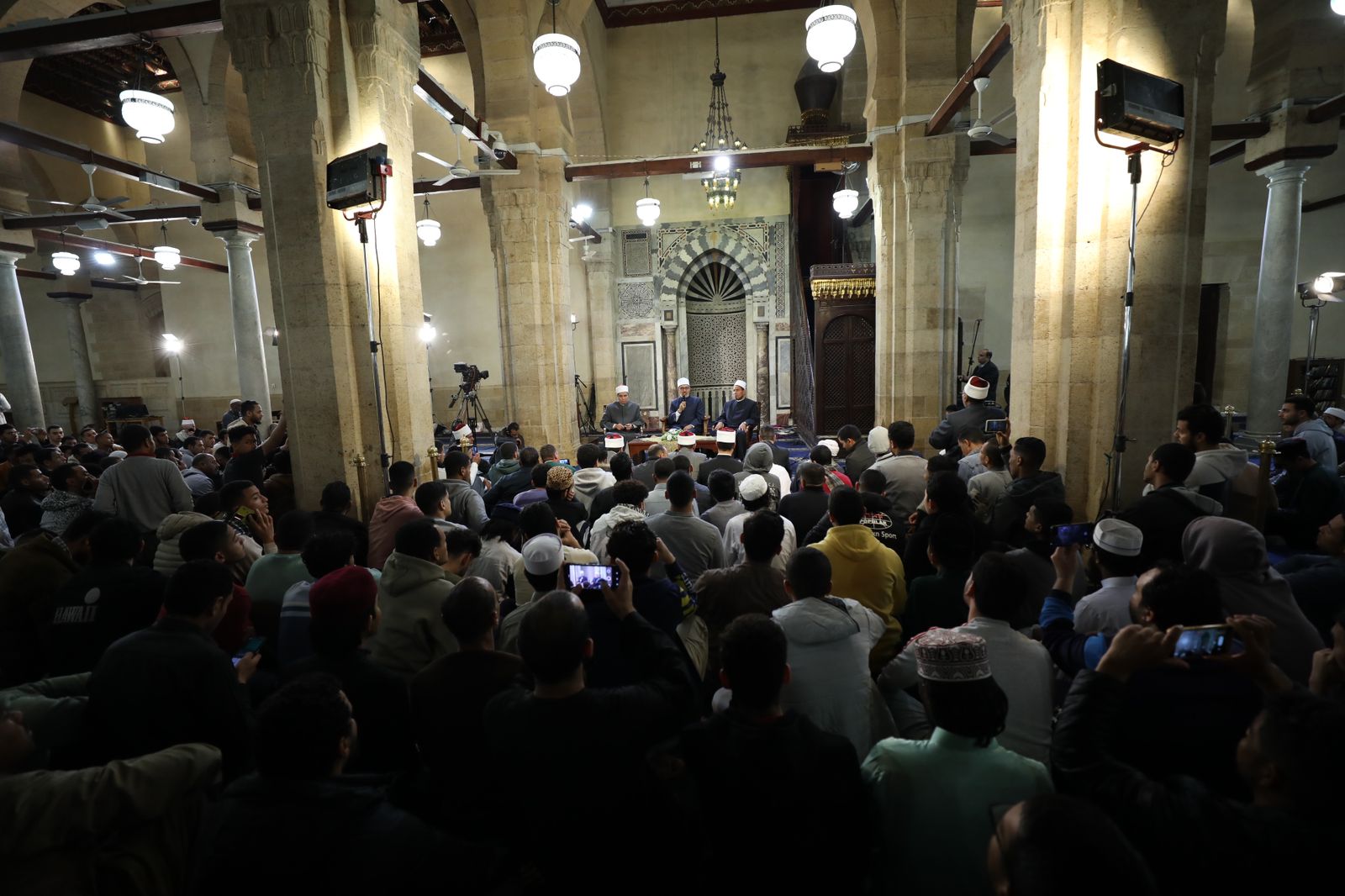 عقد الجامع الأزهر اليوم الأحد عقب صلاة التراويح «ملتقى الأزهر.. قضايا إسلامية»، بمشاركة الدكتور نظير عياد، الأمين العام لمجمع البحوث الإسلامية، والدكتور عبد الفتاح خضر، عميد كلية القرآن الكريم للقراءات وعلومها، التابعة إلى جامعة الأزهر، وأدار الملتقى الدكتور عبد المنعم فؤاد، المشرف العام على الأنشطة العلمية بالجامع الأزهر، بحضور جمعٍ من علماء وقيادات الأزهر الشريف، والمصلين الذين حضروا إلى الجامع من شتى ربوع مصر ومن مختلف الدول العربية والإسلامية من المقيمين في مصر، وناقش الملتقى اليوم «الأزهر والسلام العالمي».