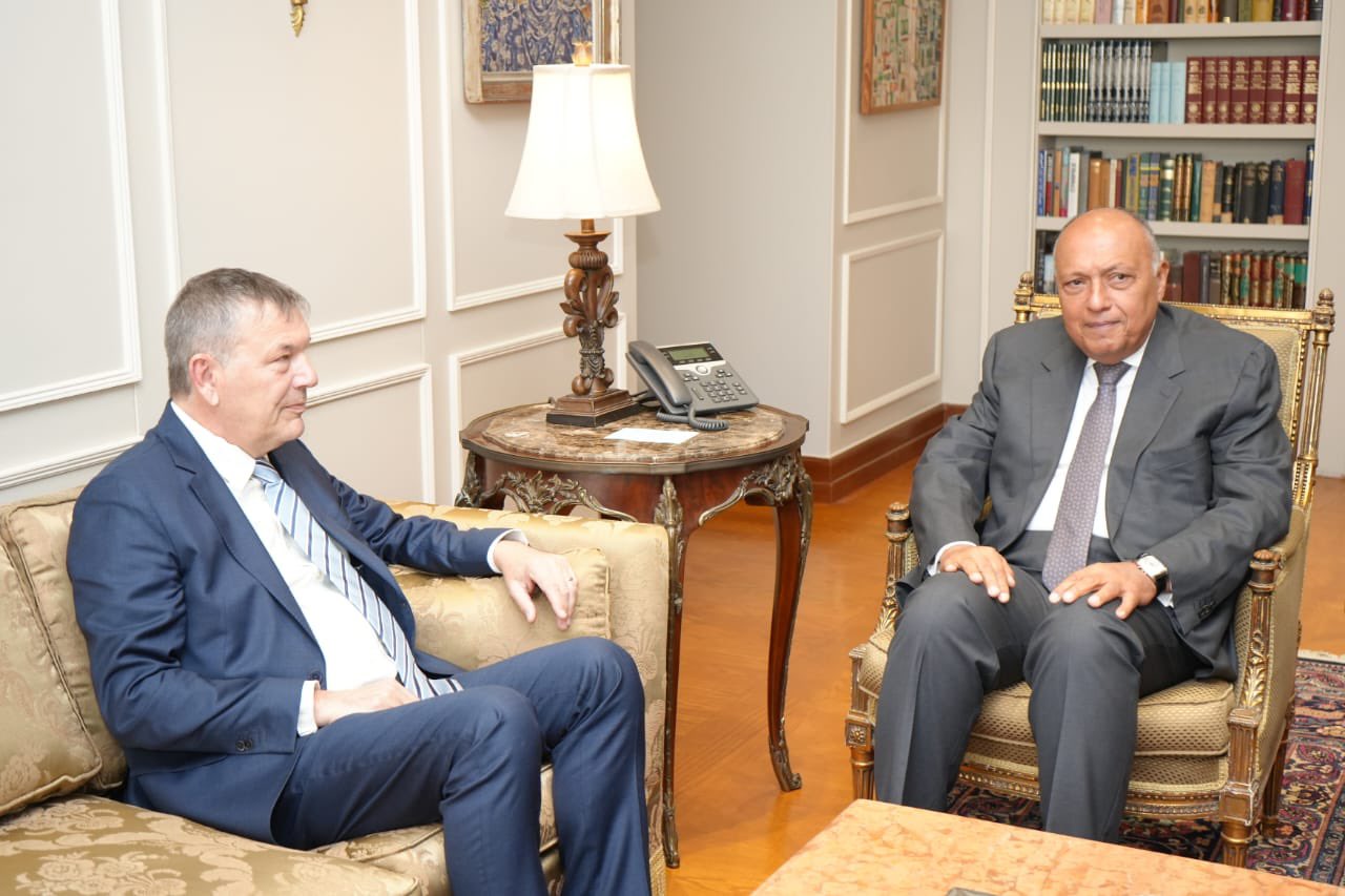استقبل سامح شكرى وزير الخارجية، فیلیب لازاریني" - المفوض العام لوكالة الأمم المتحدة لإغاثة وتشغیل اللاجئین الفلسطینیین) الأونروا.