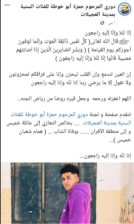خيم الحزن على مدينة العجيلان لوفاة الشاب الصغير همام شعبان خميس، والذي كان يتمتع بصحة جيدة، وبدأت العائلة في تلقى العزاء، وقامت العائلات في مدينة العجيلات بنعي همام، وكتبت صفحة رياضية ليبية تسمى "دوري المرحوم حمزة أبو خوطة للفئات السنية بمدينة العجيلات" نعي للشاب الرياضي الليبي جاء فيه "إن العين لتدمع وإن القلب ليحزن وإنا على فراقكم لمحزونون، ولا نقول إلا ما يرضى الله..."