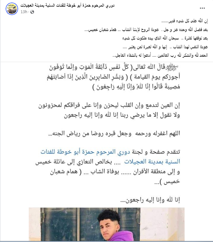 أما الصفحة الرياضية الخاصة لدوري المرحوم حمزة أبو خوطة بالعجيلات، والتي سبق وأن نعت الشاب، قامت بزف البشرى بعودته للحياة بعد الموت، فقالت: "إن الله على كل شيء قدير... بعد فضل الله وحده عز وجل. عودة الروح لابننا الشاب... همام شعبان خميس.... بعد توقفها لفترة.. سبحان الله الذي بيده ملكوت كل شيء.. عودة النفس لهدا الشاب.. إنها والله لعبرة لمن يعتبر.... الحمد لله والشكر لله رب العالمين.... أدعوا له بالشفاء العاجل.."