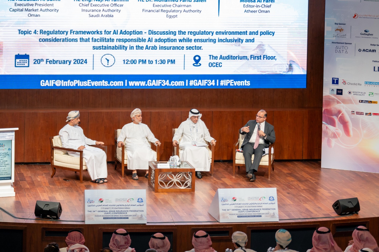 شارك الدكتور محمد فريد رئيس الهيئة العامة للرقابة المالية في فعاليات المؤتمر الإقليمي الرابع والثلاثون للاتحاد العام العربي للتأمين تحت شعار "من أجل صناعة تأمين عربي أكثر استدامة وشمولية: كيف يمكن للشركات العربية الانخراط في ثورة الذكاء الاصطناعي" والذي نظمته الجمعية العُمانية للتأمين، والأمانةُ العامة للاتحاد العام العربي للتأمين، في مدينة مسقط بسلطنة عمان.