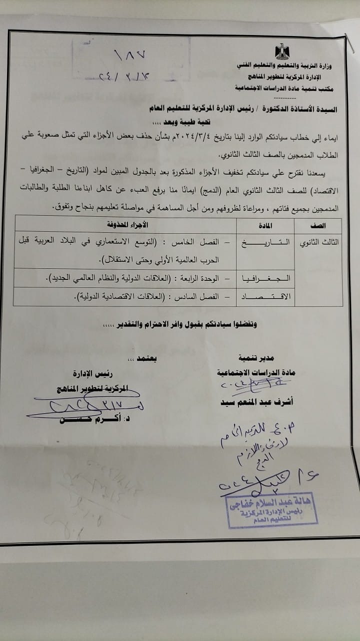 محذوفات مواد التاريخ والجغرافيا والاقتصاد