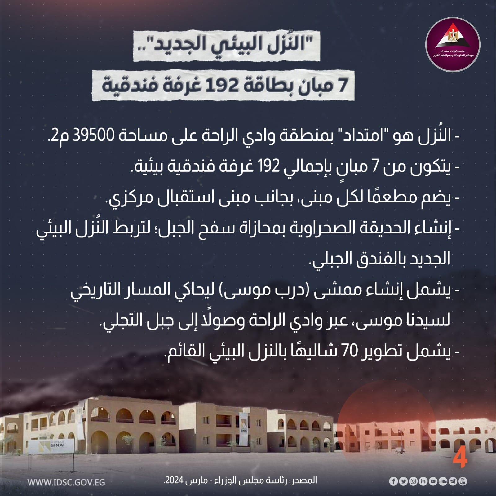 على مساحة 39 ألف متر مربع، تفاصيل مشروع النزل البيئي بمدينة سانت كاترين (إنفوجراف)