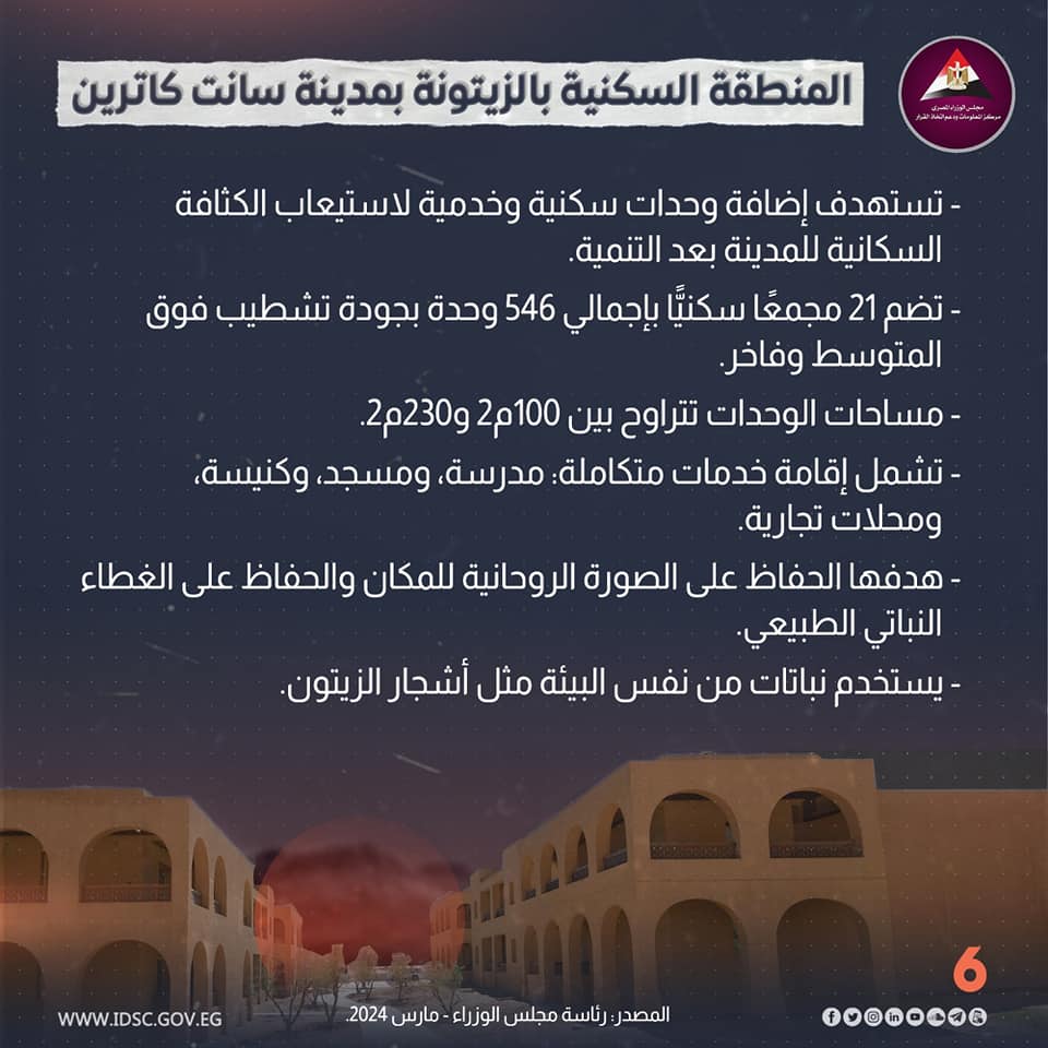 كشفت الصفحة الرسمية لمركز المعلومات ودعم اتخاذ القرار بمجلس الوزراء على موقع التواصل الاجتماعي "فيسبوك" عن أهمية مشروع التجلي الأعظم بمدينة سانت كاترين في محافظة جنوب سيناء.
