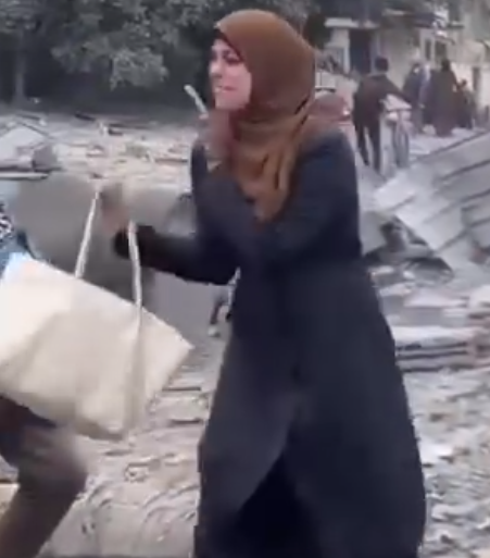 مشاعر أم فلسطينة مكلومة ظهرت بوضوح في مقطع الفيديو، حيث أخذت الأم تصرخ وتبكي بشدة عندما شاهدت أنقاض منزلها المنهارعلى الأطفال، وأخذت تصرخ وتقول "كلهم جوا، روح أجيب طحين والله رحت أجيب طحين، يارب عشان حبيبك النبي.. يارب يارب.. وين اشوفهم.. ألحقوني.. أولادي راحوا"، كلمات خالطها صراخ وبكاء الحسرة.