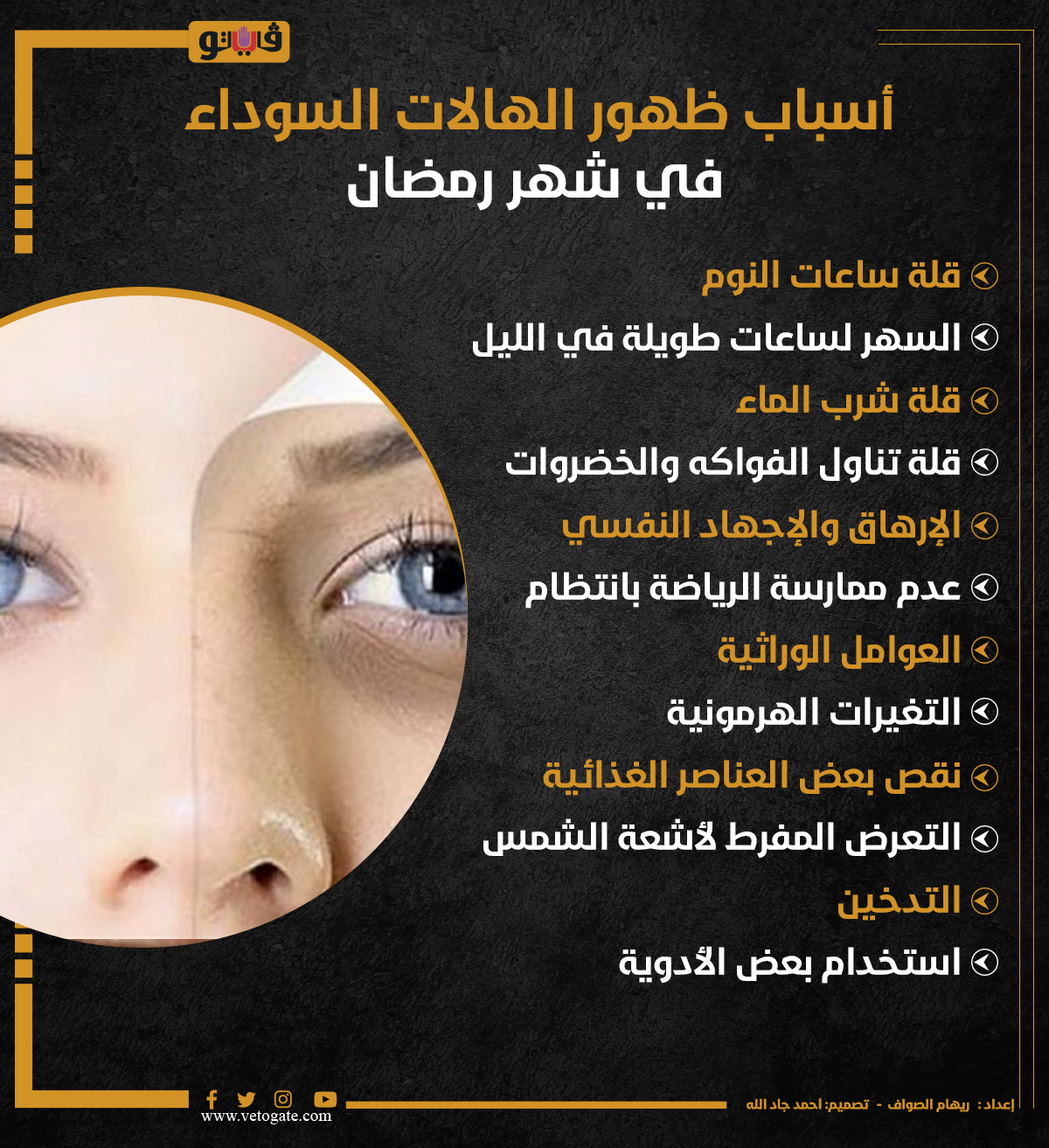 أسباب ظهور الهالات السوداء في شهر رمضان (إنفوجراف) السبت 30/مارس/2024 - 03:00 م 3/30/2024 3:00:00 PM الهالات السوداء، فيتو ريهام الصواف شارك طباعة 18 حجم الخط شارك طباعة أسباب الهالات السوداء حول العين عند الأطفال ازالة الهالات السوداء من تحت العين اسباب الهالات السوداء اسباب الهالات السوداء تحت العين اسباب الهالات السوداء في رمضان
