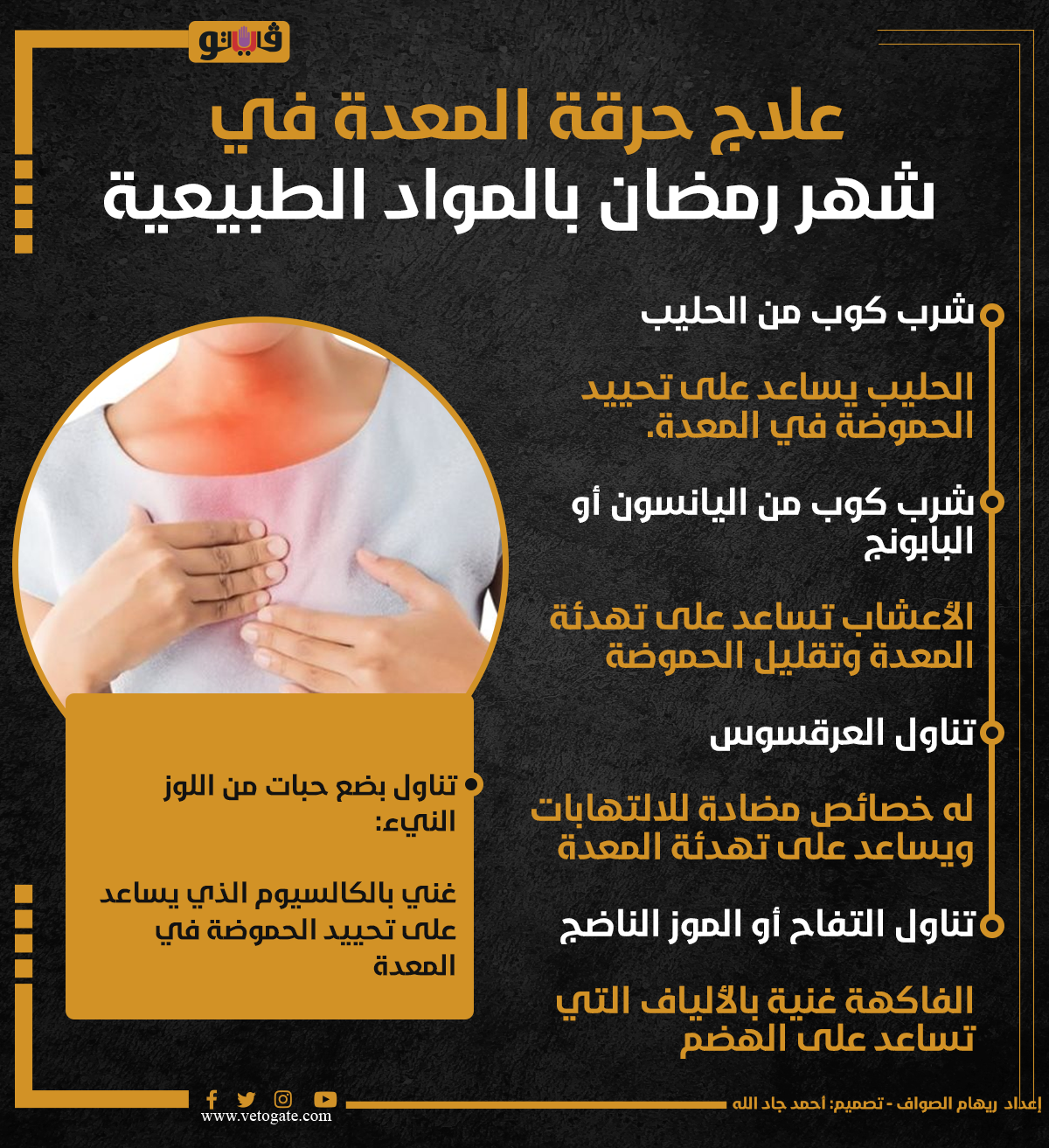 علاج حرقة المعدة في شهر رمضان بالمواد الطبيعية (إنفوجراف)