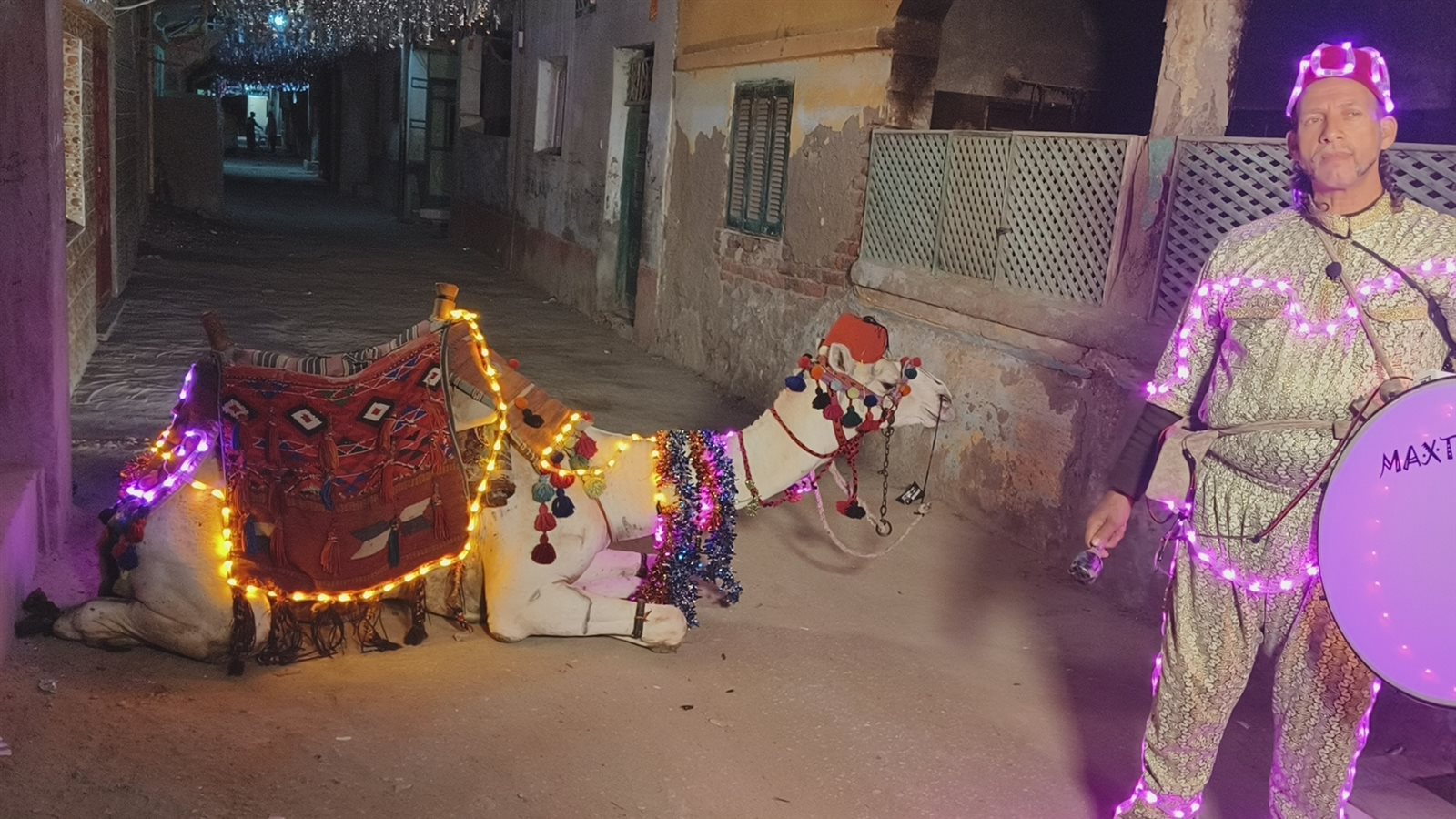 للعام الرابع بيطور مهنته، حكاية مسحراتي بالأنوار والجمل في الدقهلية (صور)